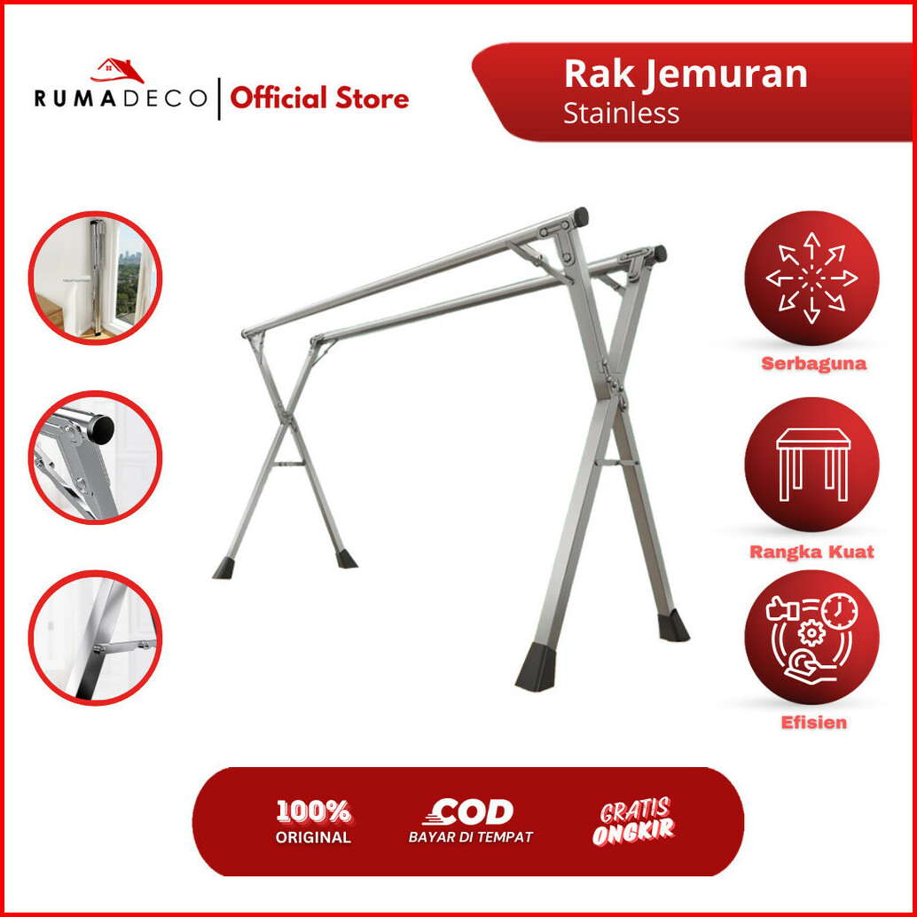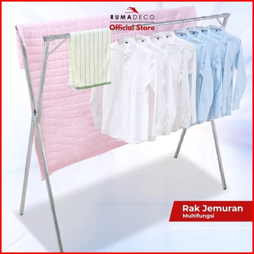 Rumadeco Jemuran Baju Pakaian Lipat Stainless Steel Anti Karat Kuat Portable