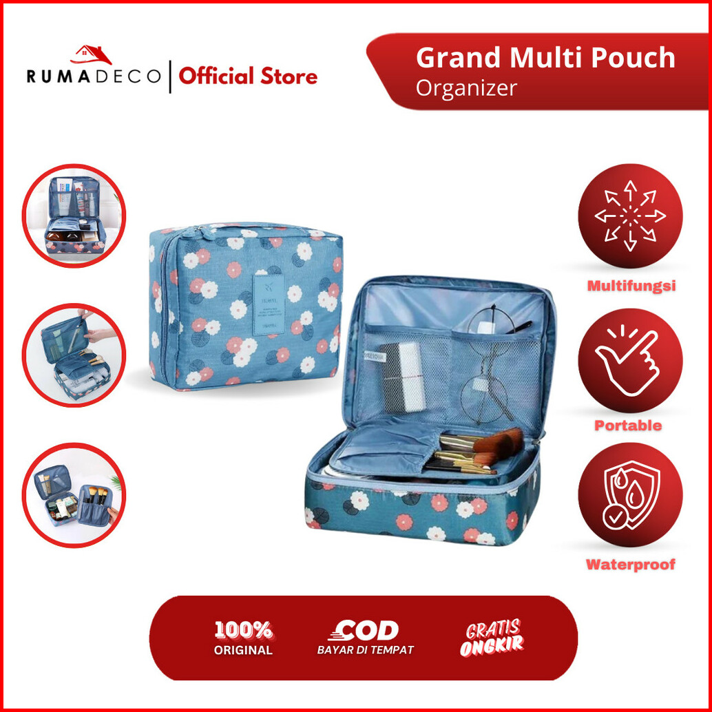 Rumadeco Tas Kosmetik Travel Pouch Grand Multi Pouch Tas Travel Multifungsi Pouch Organizer Transferproof