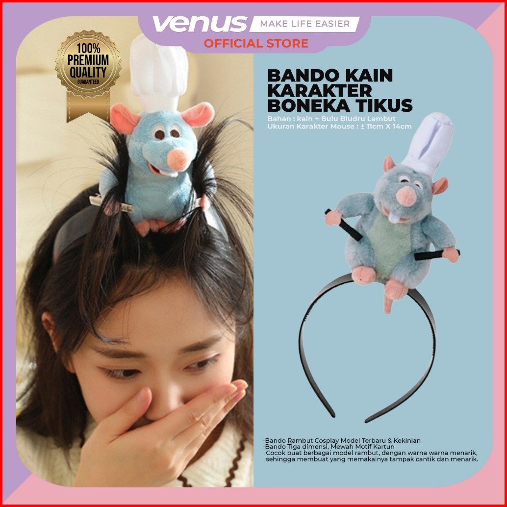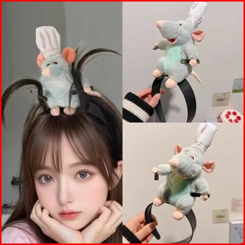Bando Kain Tipis Karakter Boneka Tikus Ratatouille Jepit Poni Headband Cosplay Motif Kartun Bandana Lucu Karakter Hewan