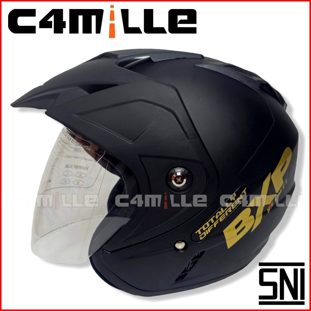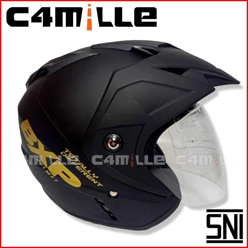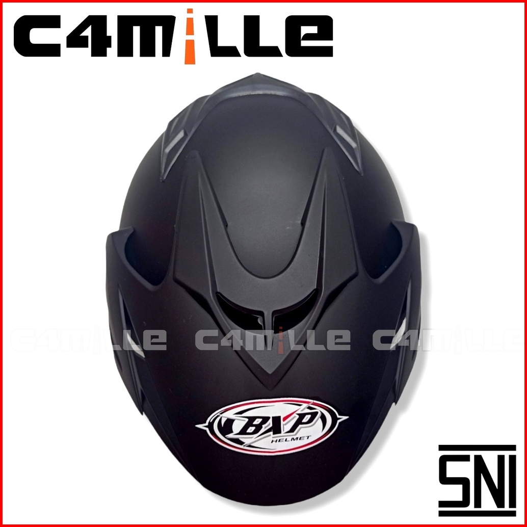 Helm Godzilla Bxp Solid Black Doff Half Face Murah Sni Satu Kaca
