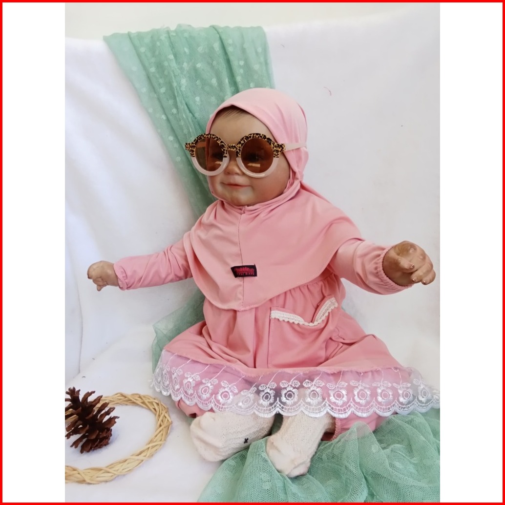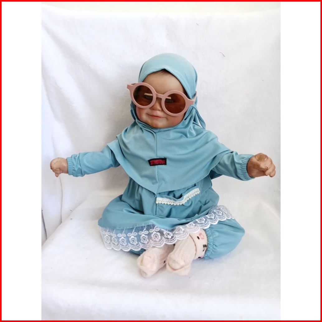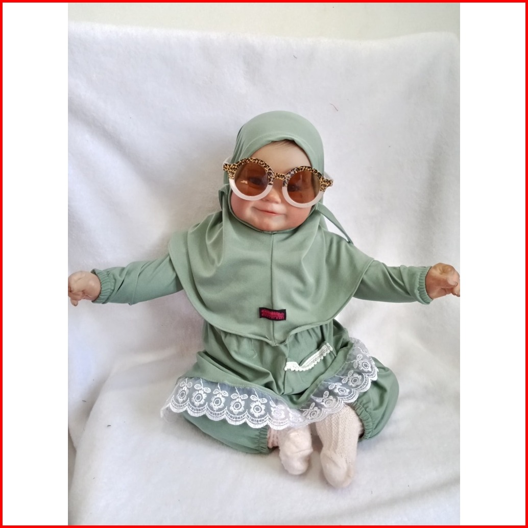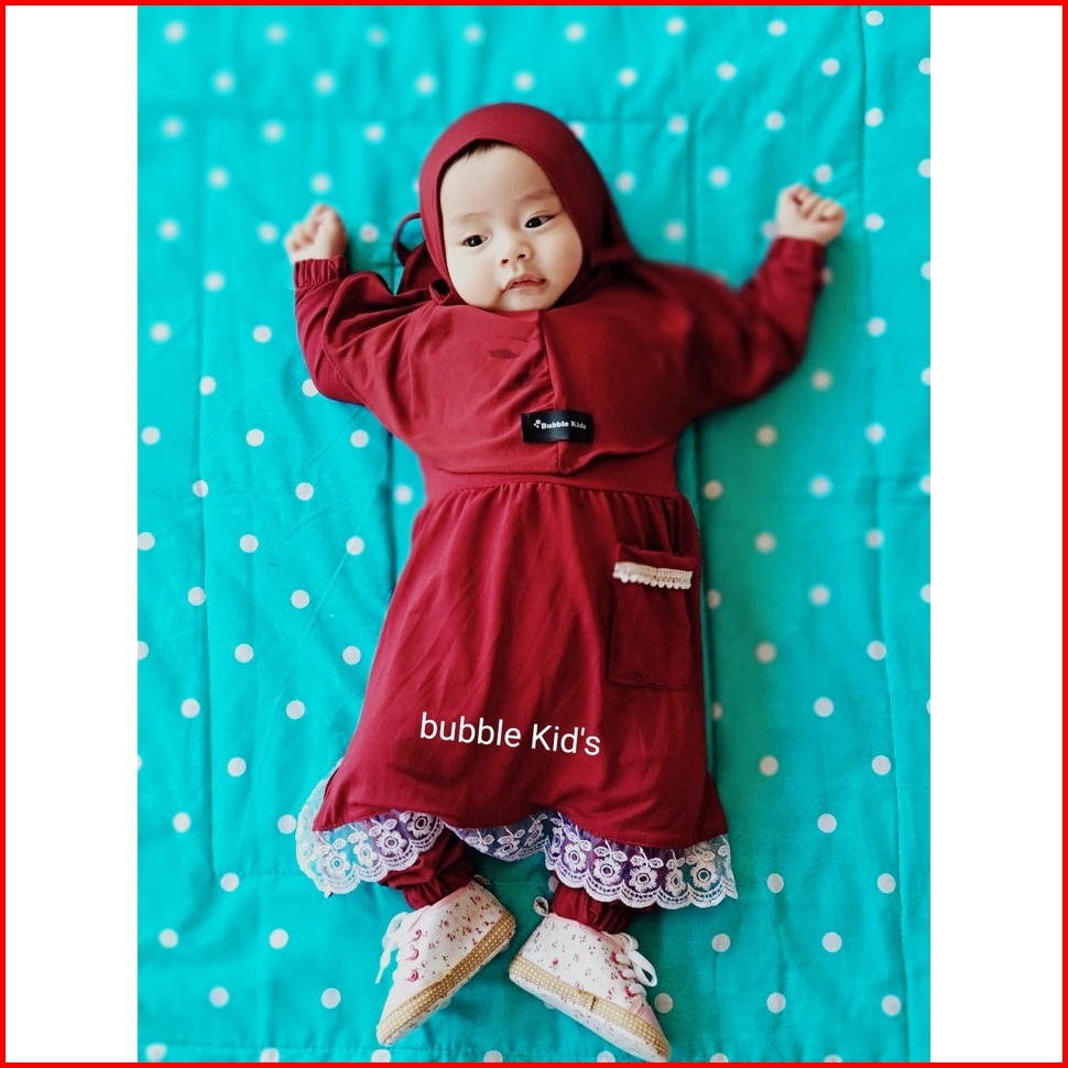 Setelan Gamis Hijab Alena Pakaian Anak Perempuan Bayi Anak Balita Fashion Muslim Katun Polos Renda 0-2 5 Tahun