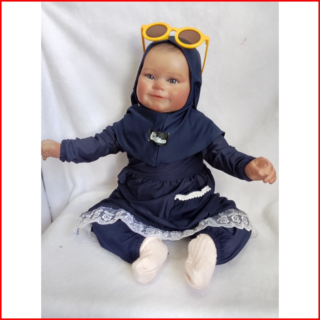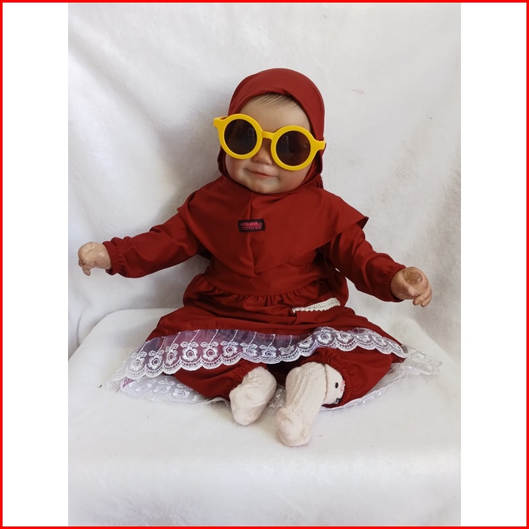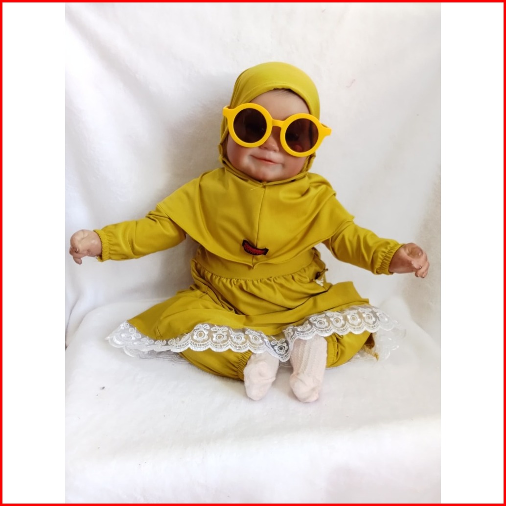 Setelan Gamis Hijab Alena Pakaian Anak Perempuan Bayi Anak Balita Fashion Muslim Katun Polos Renda 0-2 5 Tahun
