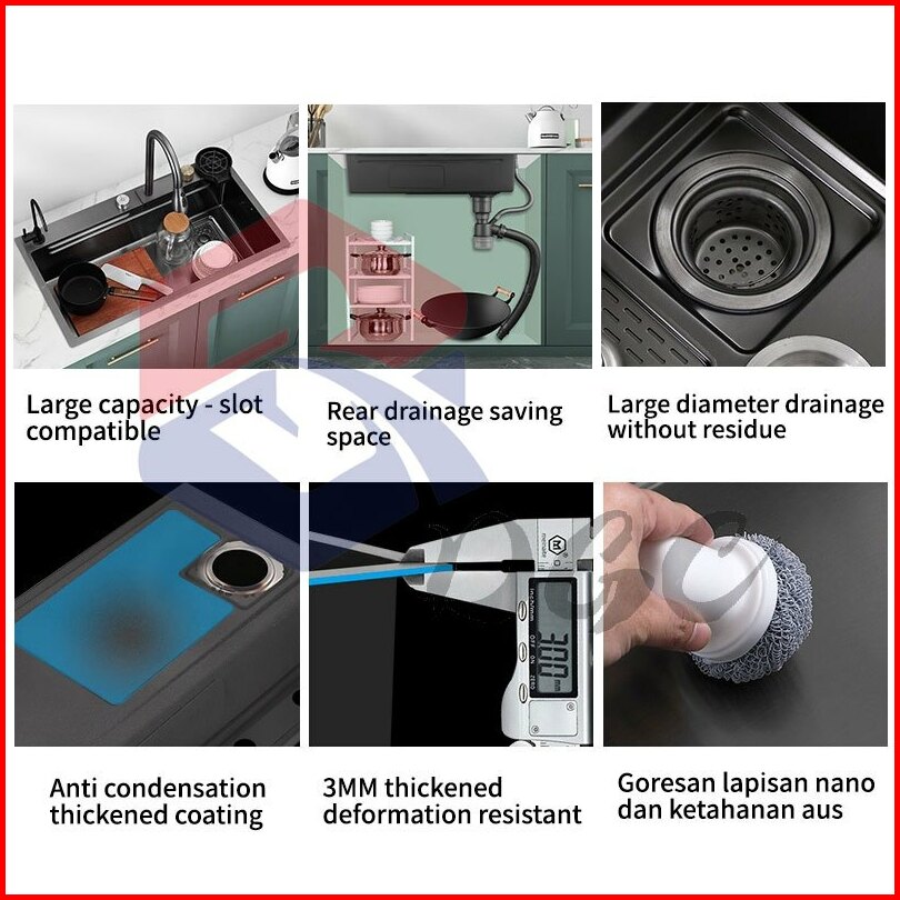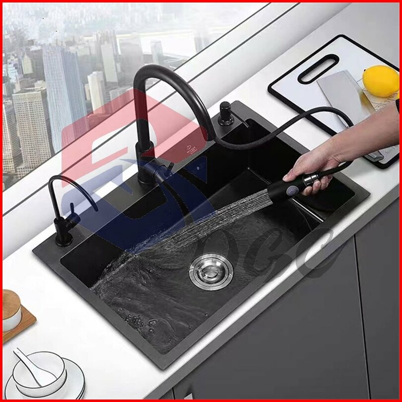 Dgc Sus304 Modern Kitchen Sink Stainless Steel Bak Cuci Piring Kitchen Sink Hitam Cuci Piring Wastafel Ketebalan 3.0mm
