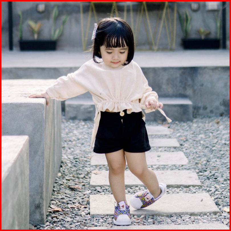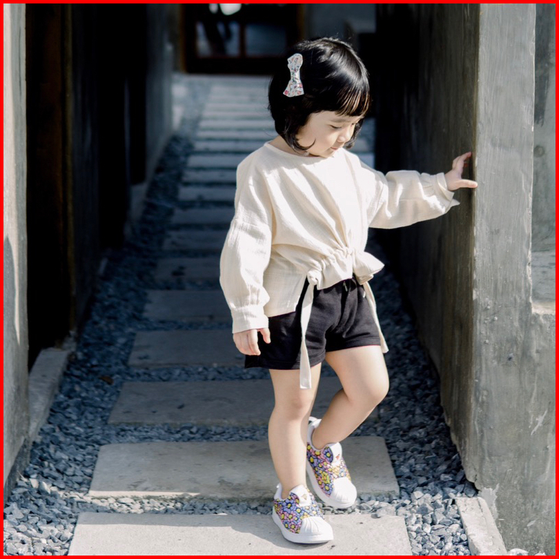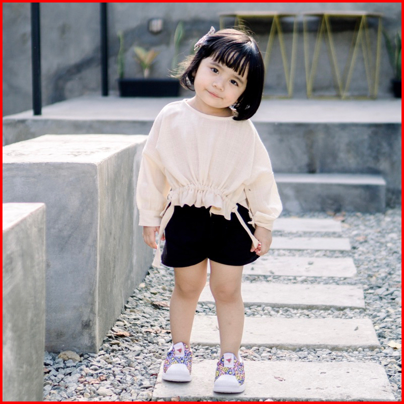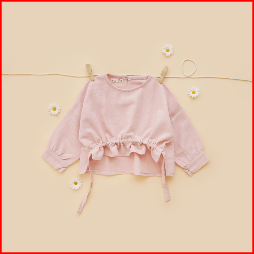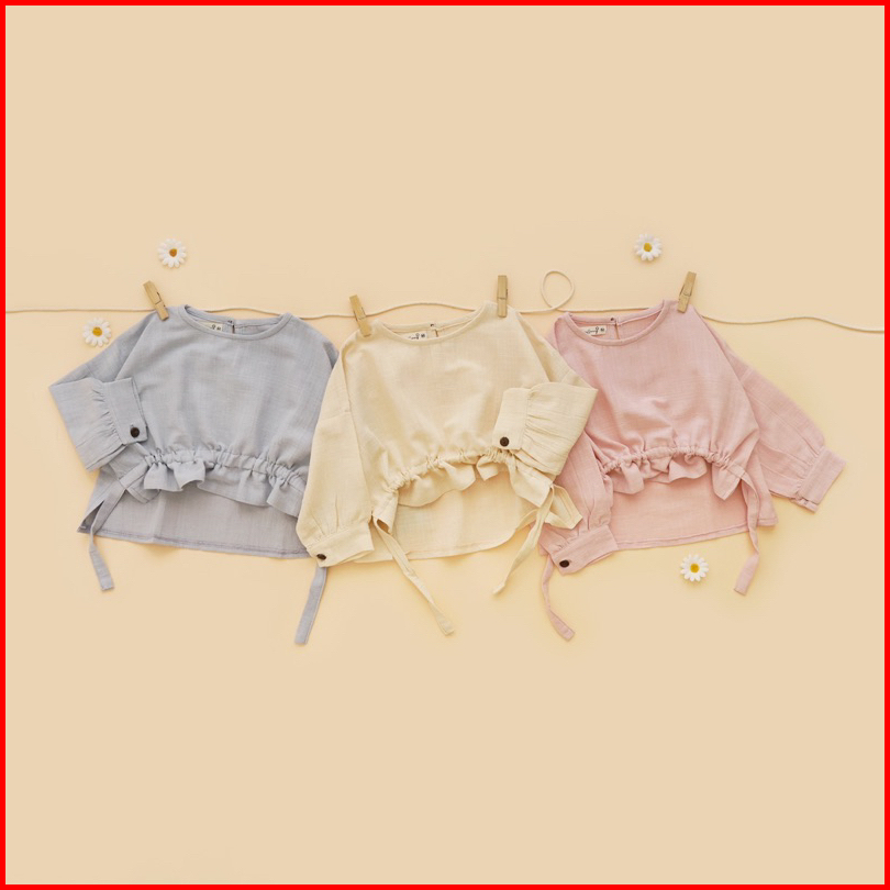 1-4 Tahun Gauri-atasan Anak Perempuan Crop Blouse Anak Perempuan Serut Korea Kemeja Anak Perempuan Linen Baju Anak Perem