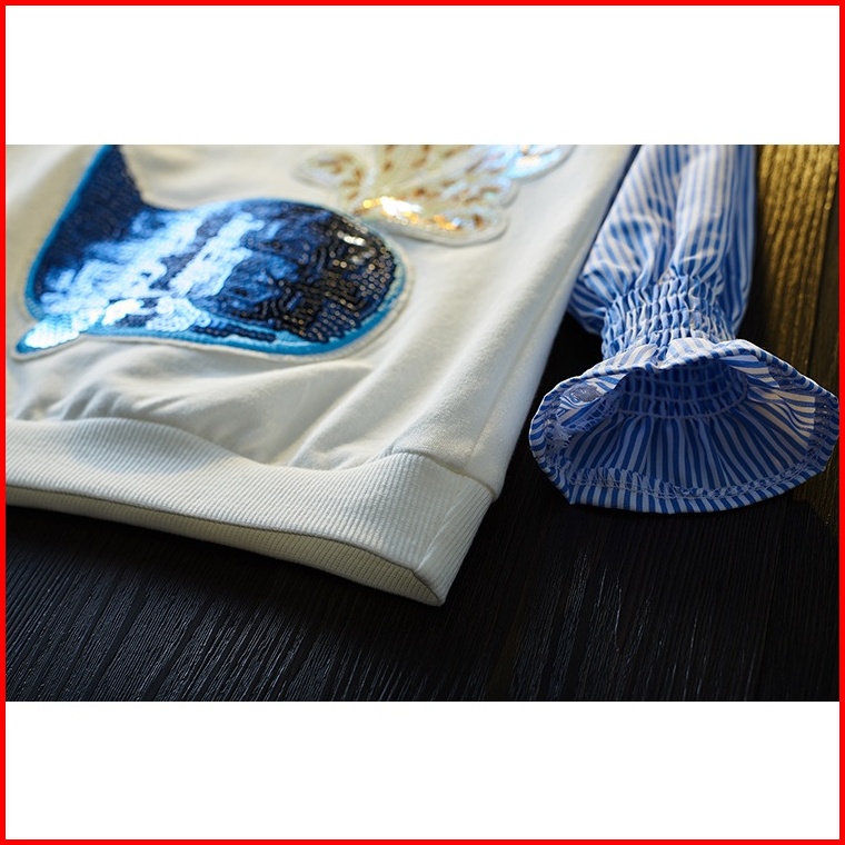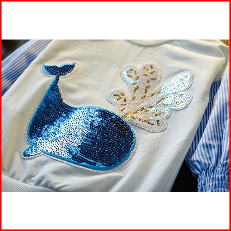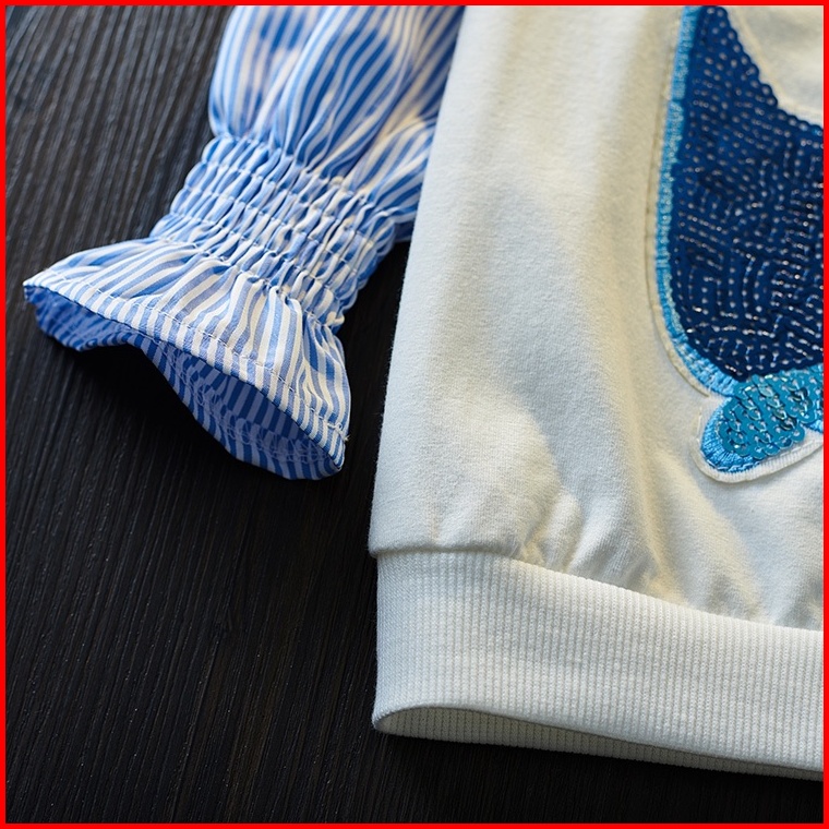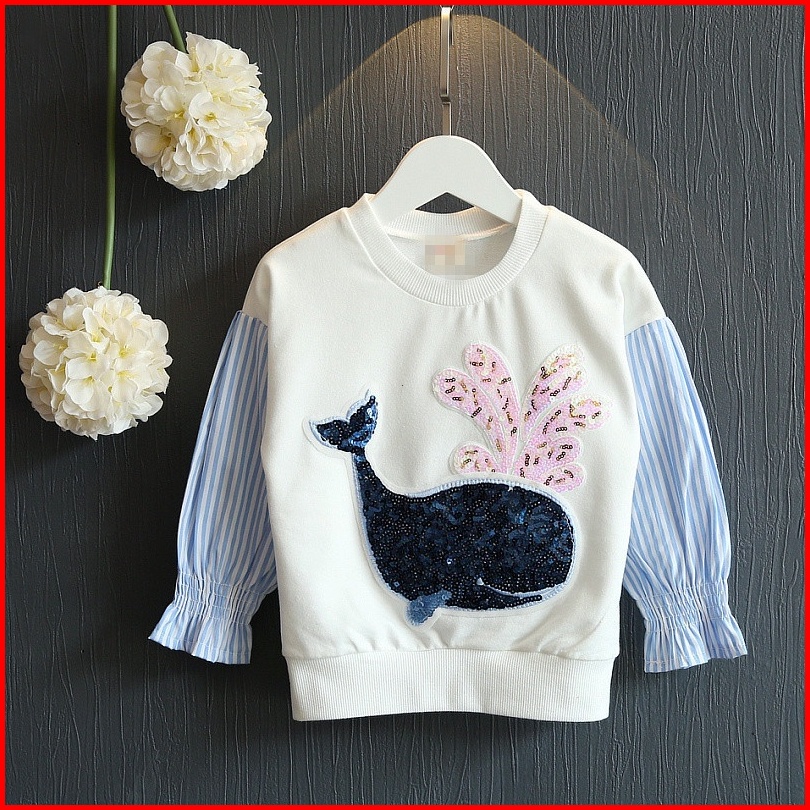 Stok Bersih Katun Kaos Blus Anak Cewek Perempuan 1-8t Sequins Kartun Bunga Baru Atasan Pakaian Lengan Kelelawar Panjang