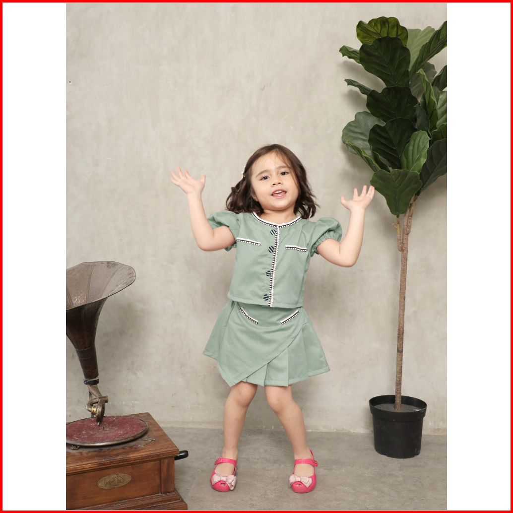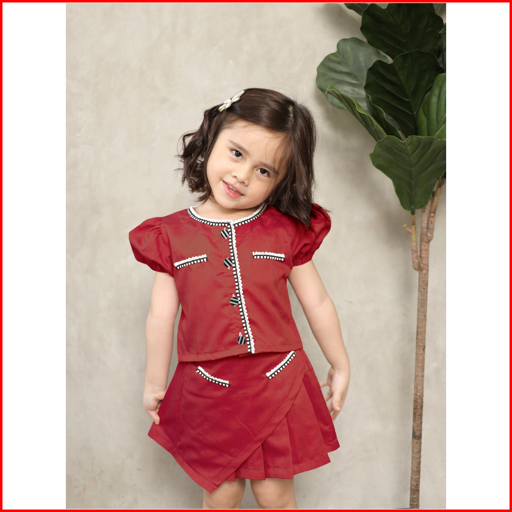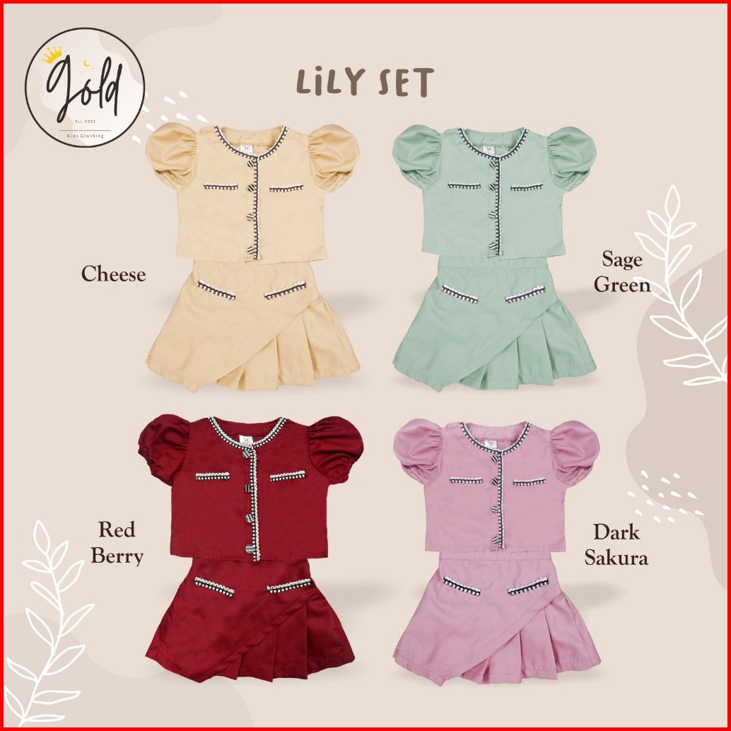 Lily Set - Setelan Pakaian Anak Perempuan Baju Outer Blouse Rok Korean Style Trendy Kekinian Murah Lucu