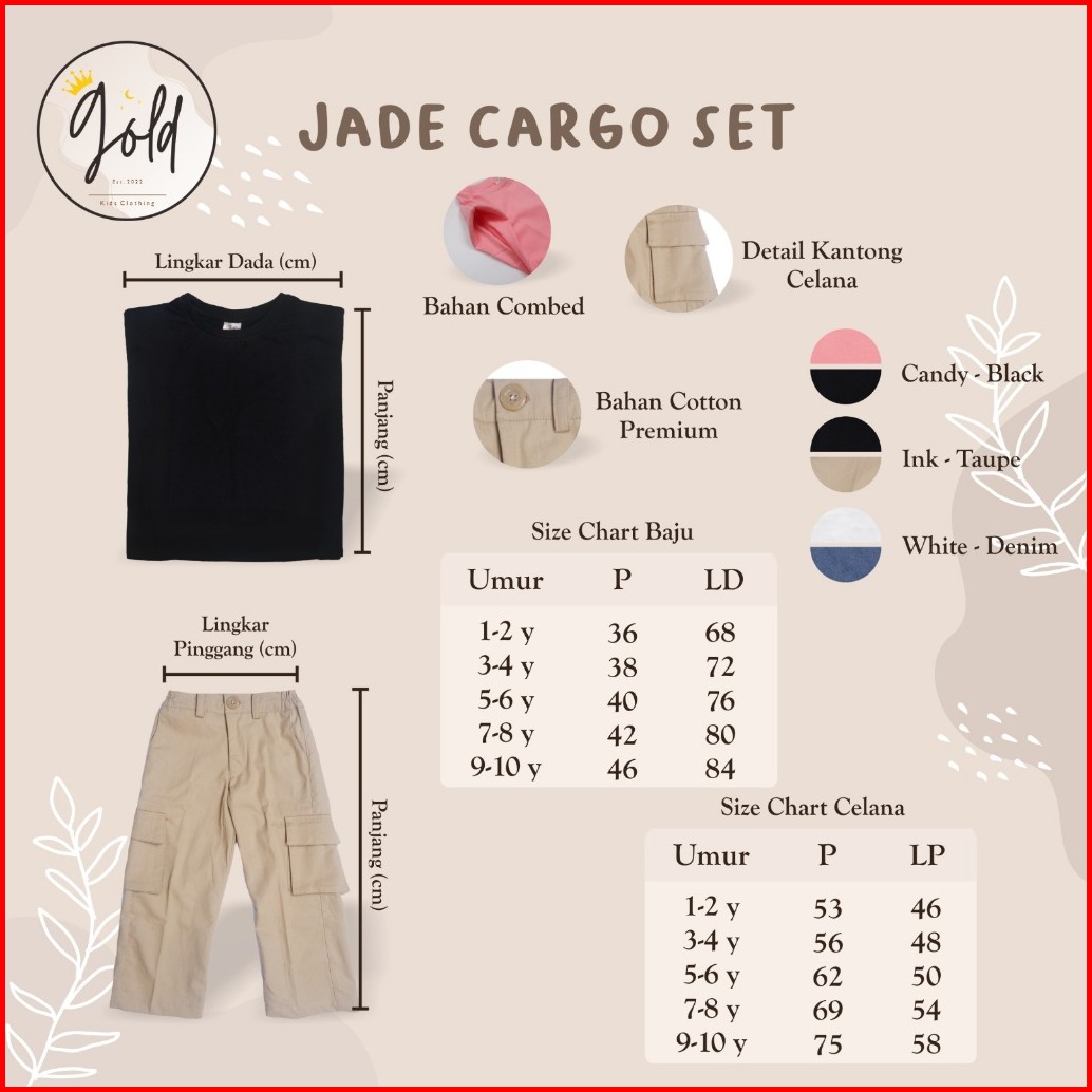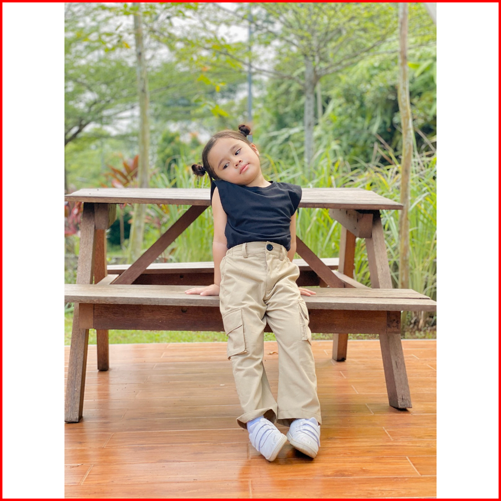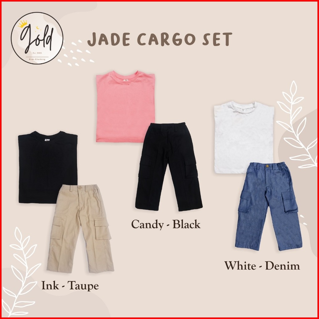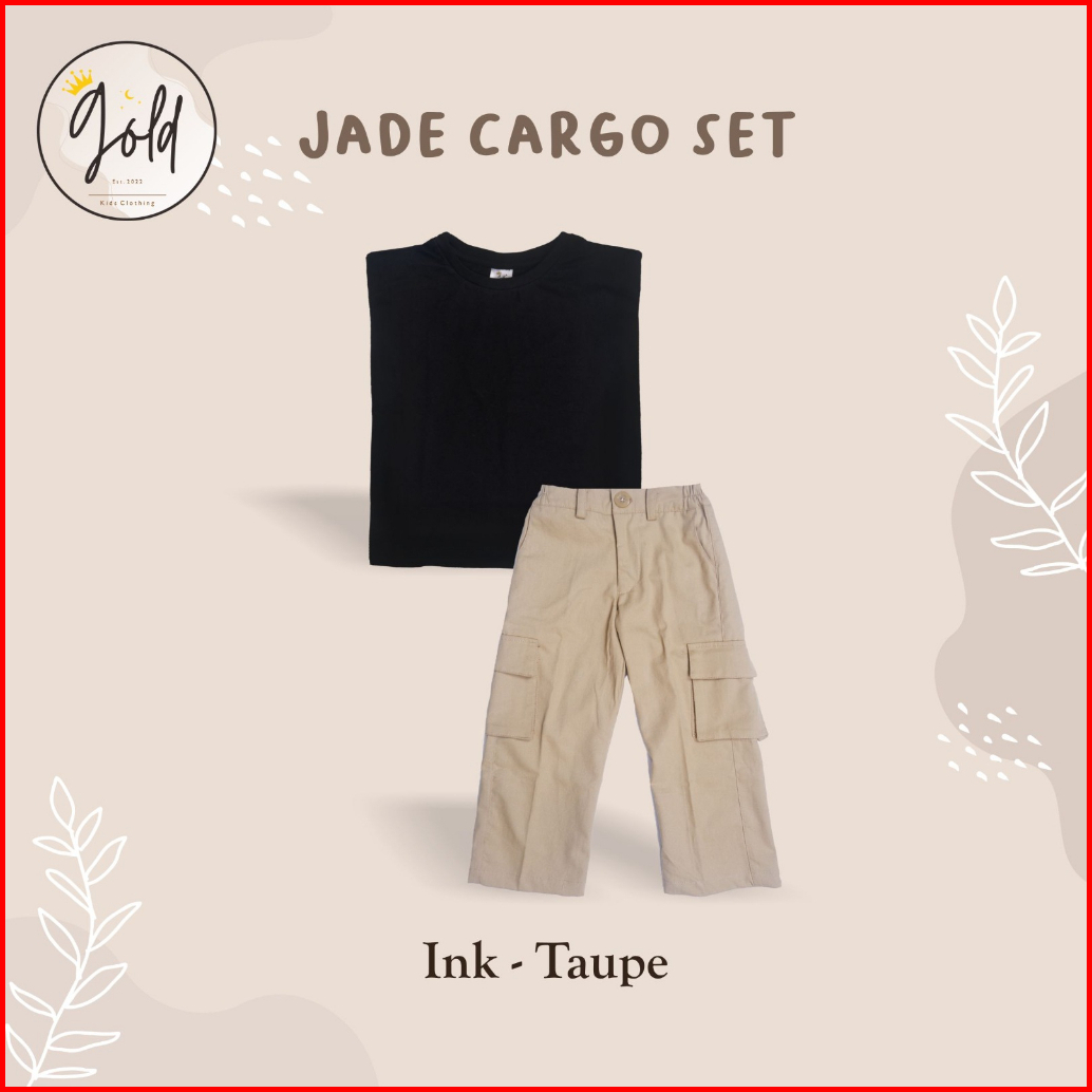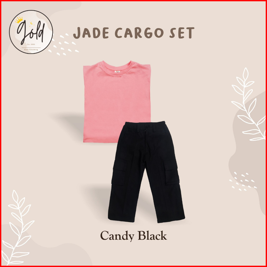 Jade Cargo Set - Setelan Pakaian Anak Perempuan Kaos Celana Panjang Cargo Korean Style Trendy Kekinian Murah Lucu Unik