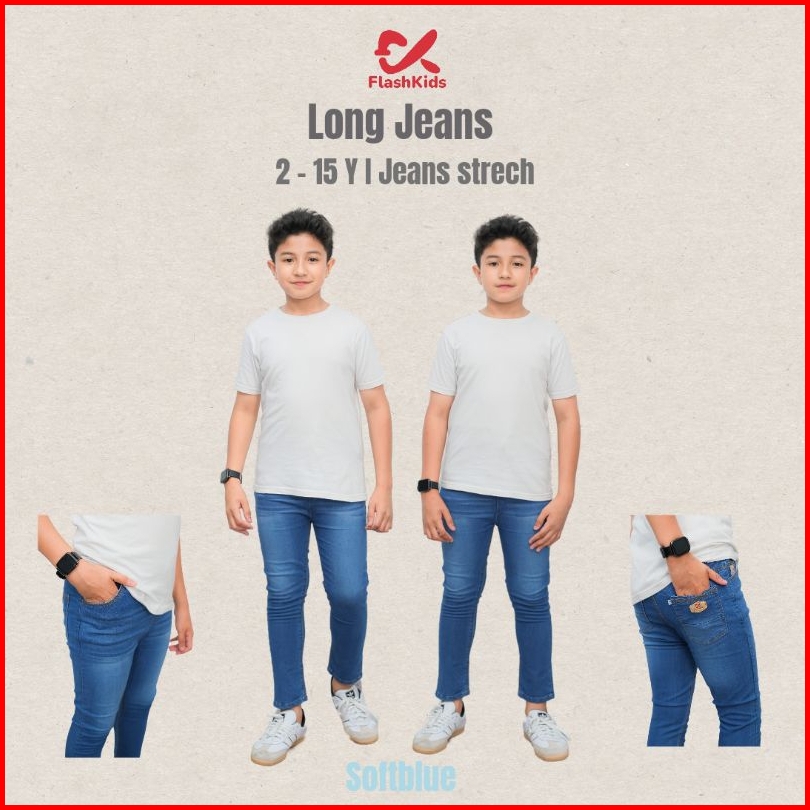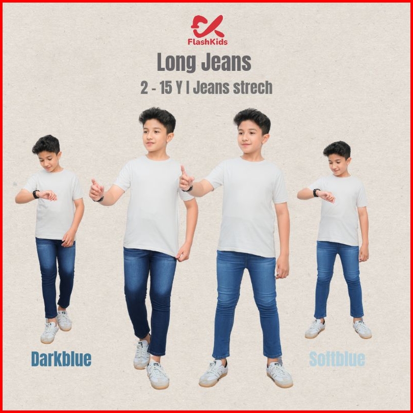 Flashkids Celana Jeans Anak Panjang Cowok Premium 2-15 Tahun Stretch Melar