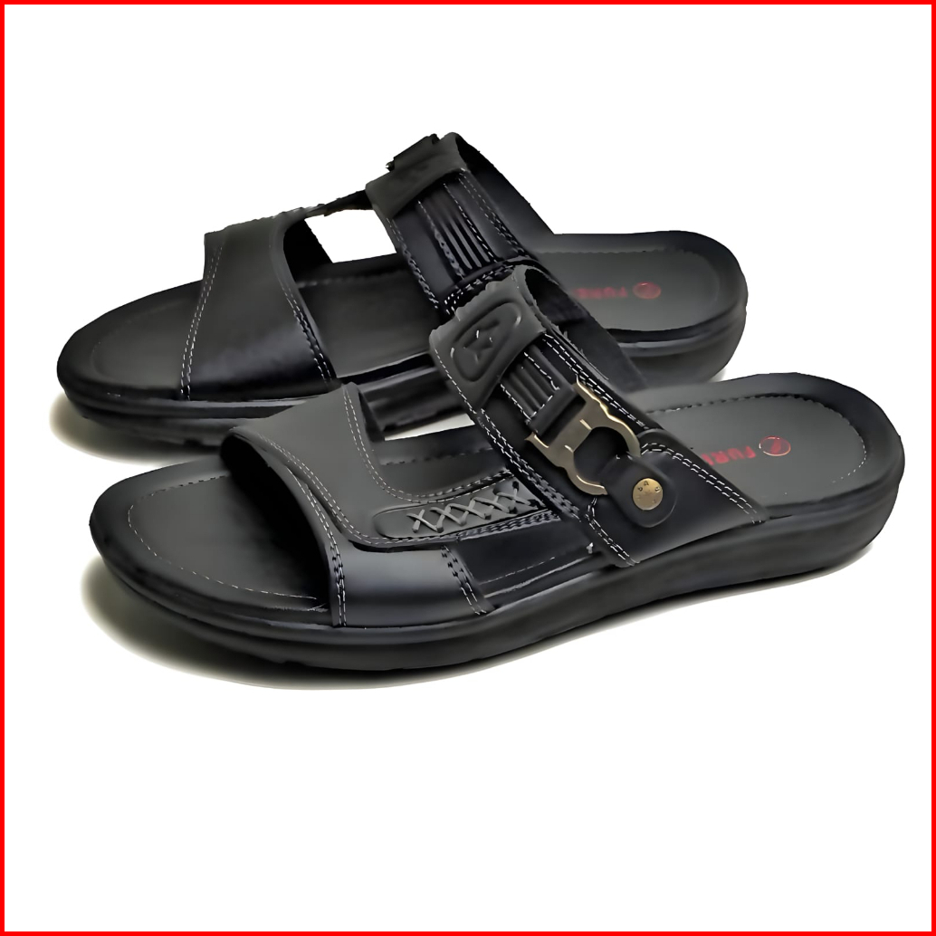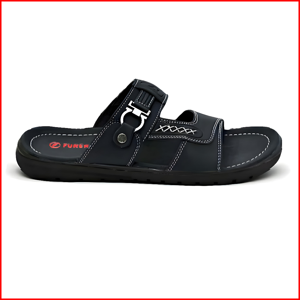 Furenic Sandal Slop Pria Kulit Kekinian Dewasa Slip On Selop Original Leather Series - L.03 Black