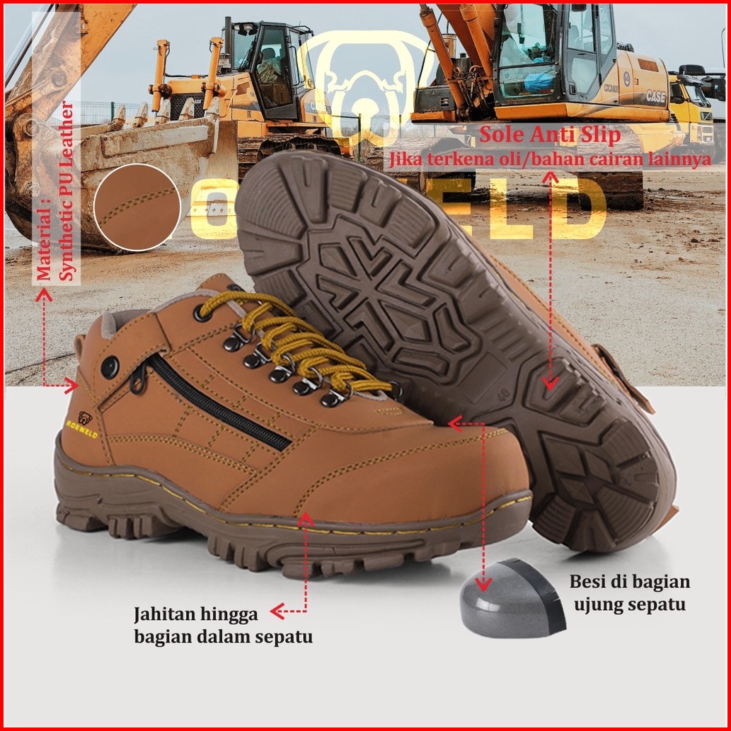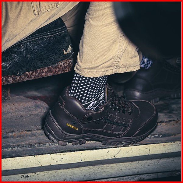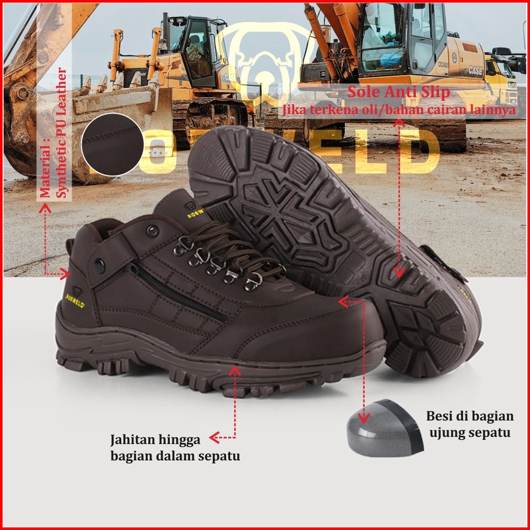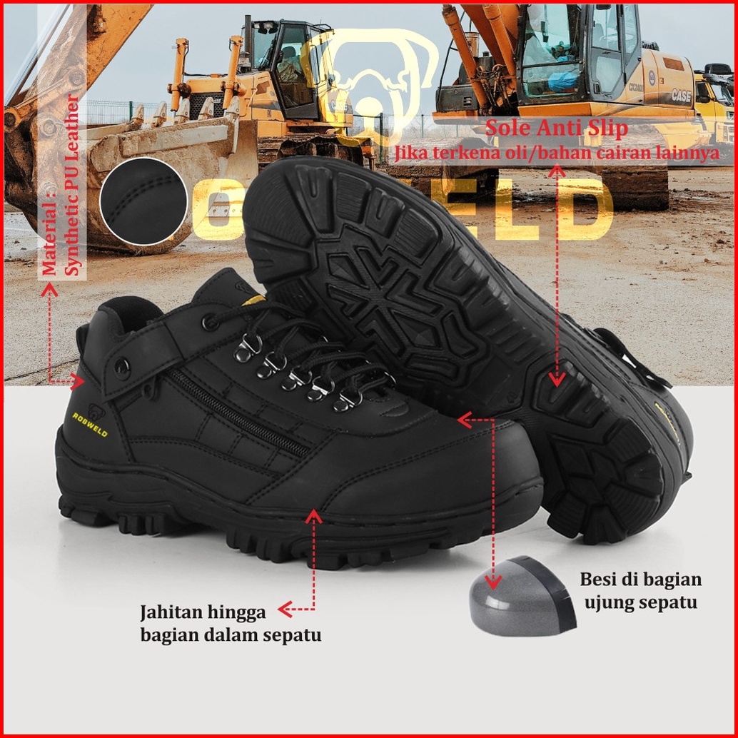 Robweld - Sepatu Safety Pria Boots Kasual Ujung Besi Kerja Proyek Hiking Touring Outdoor 39 - 44