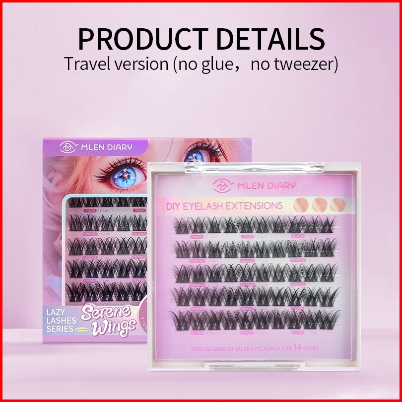 Mlen Diary Bulu Mata Palsu Serene Wing Seri Diy Perpanjangan Bulu Mata C Curl 12-16 Mmbagian Termasuk Lem Bulu Mata Eyel