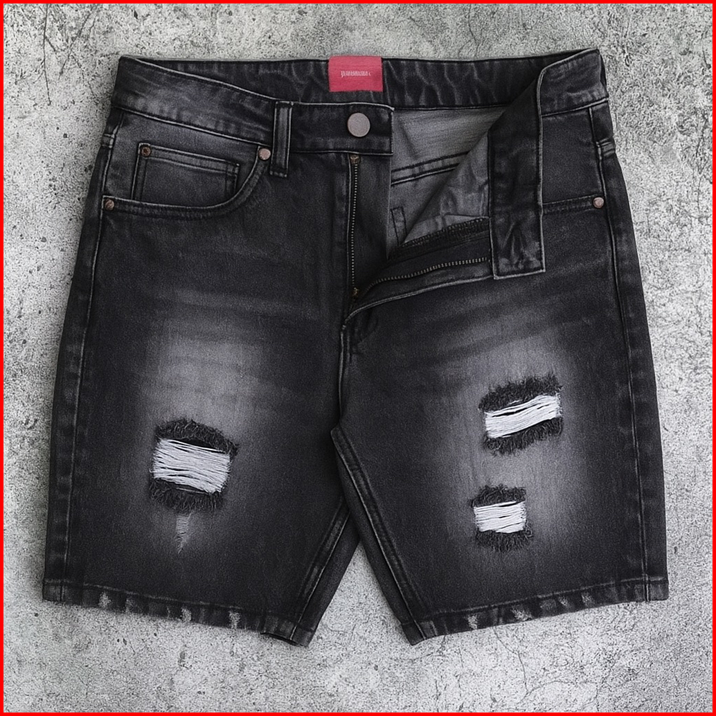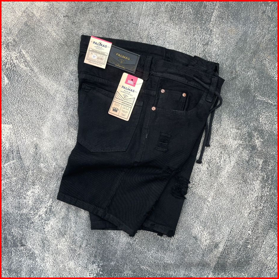 Celana Pendek Jeans Sobek Sobek Pria Cowok Dewasa Warna Hitam Snow Size 28 29 30 31 32 33 Robek