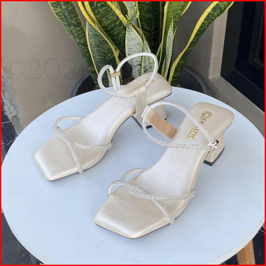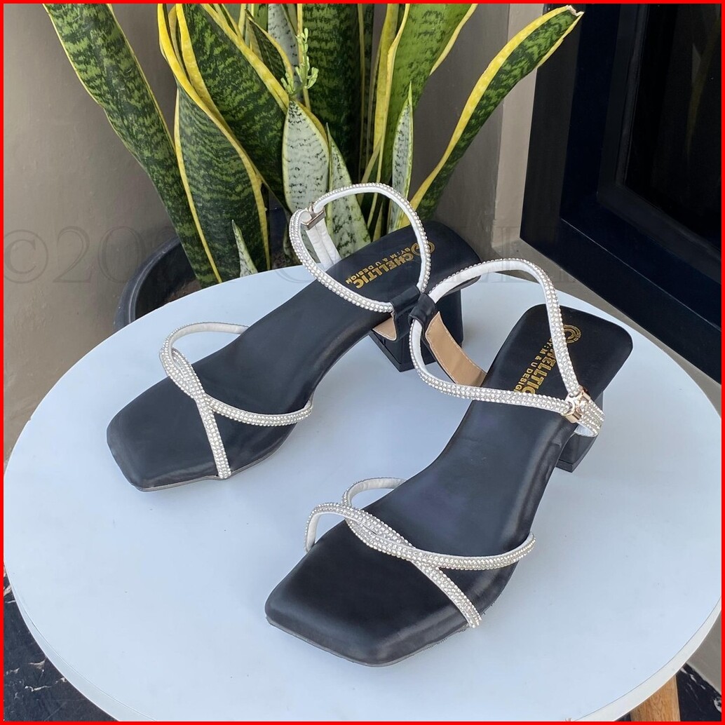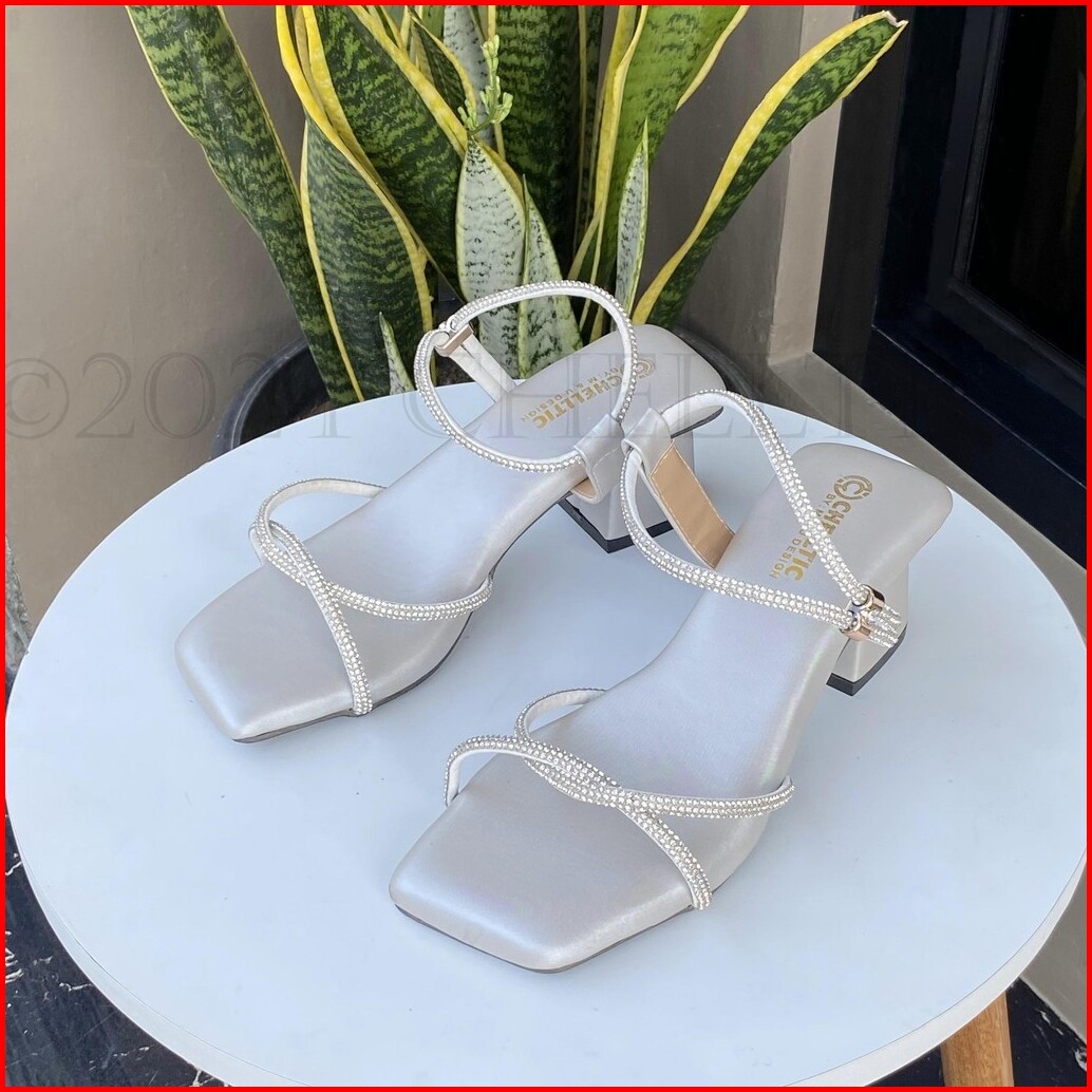 Chelltic - Sandal Wanita Heels Hak Tahu 5cm Tali Permata Terbaru Sepatu Hels Wanita Elegan Party Cewek Korea Sendal Selo