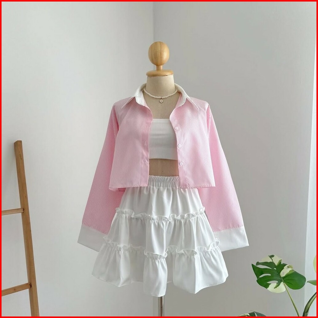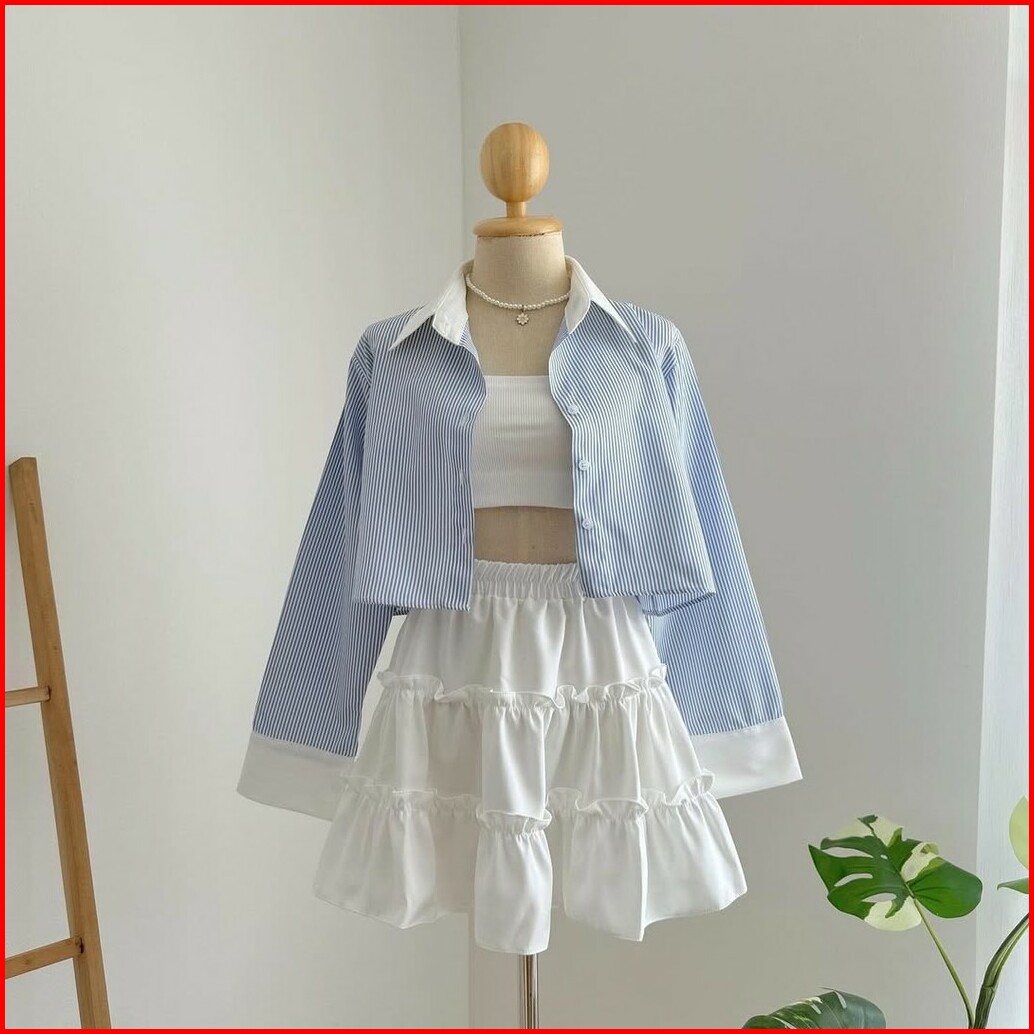 - Sasa Top Atasan Korean Blouse Wanita Remaja Matt Katun Salur Premium All Size Fit To L Besar Ootd Casual Daily