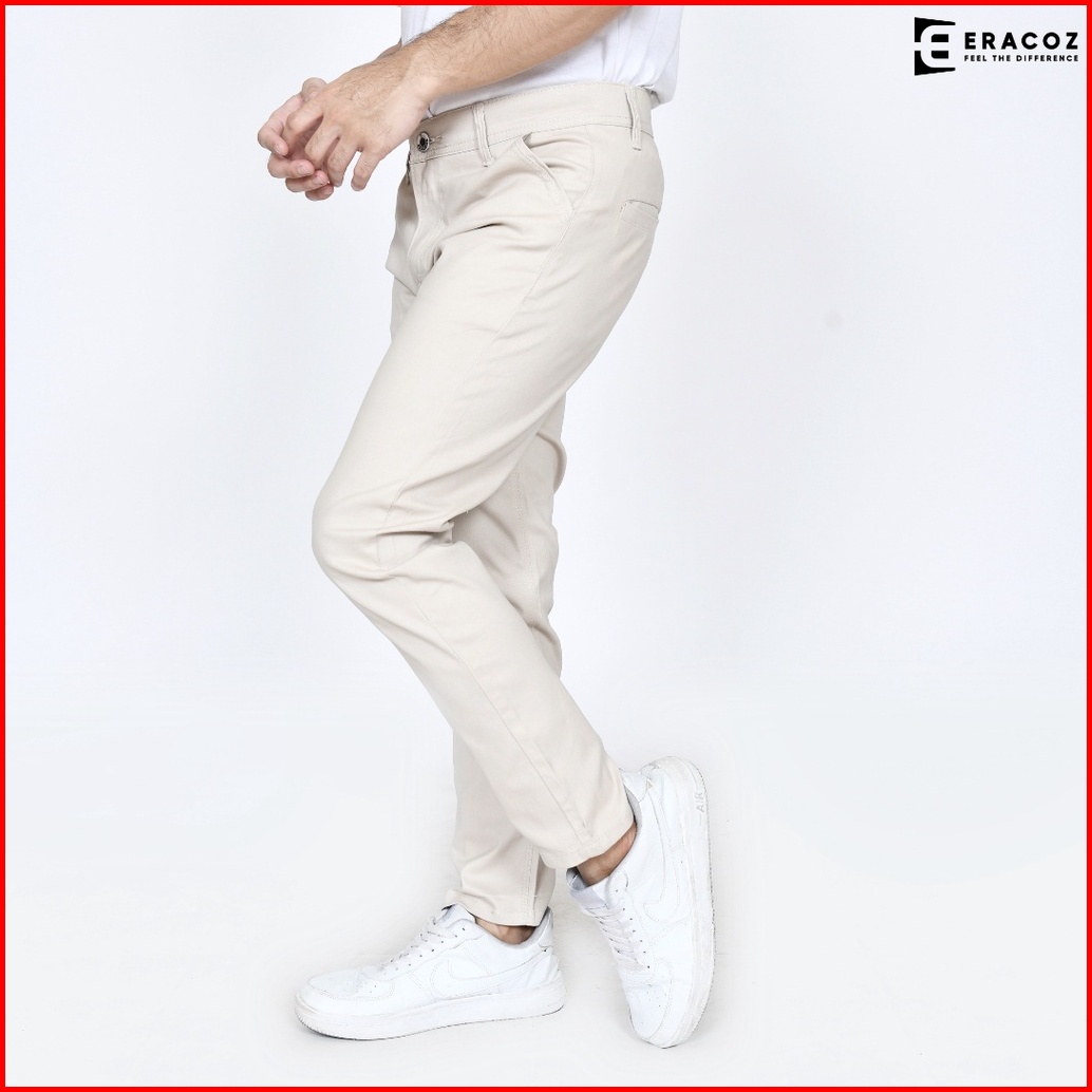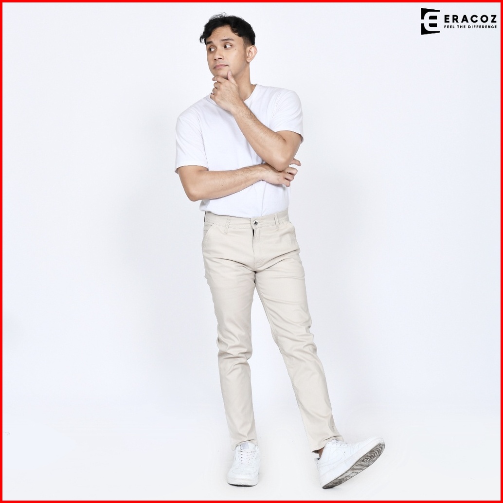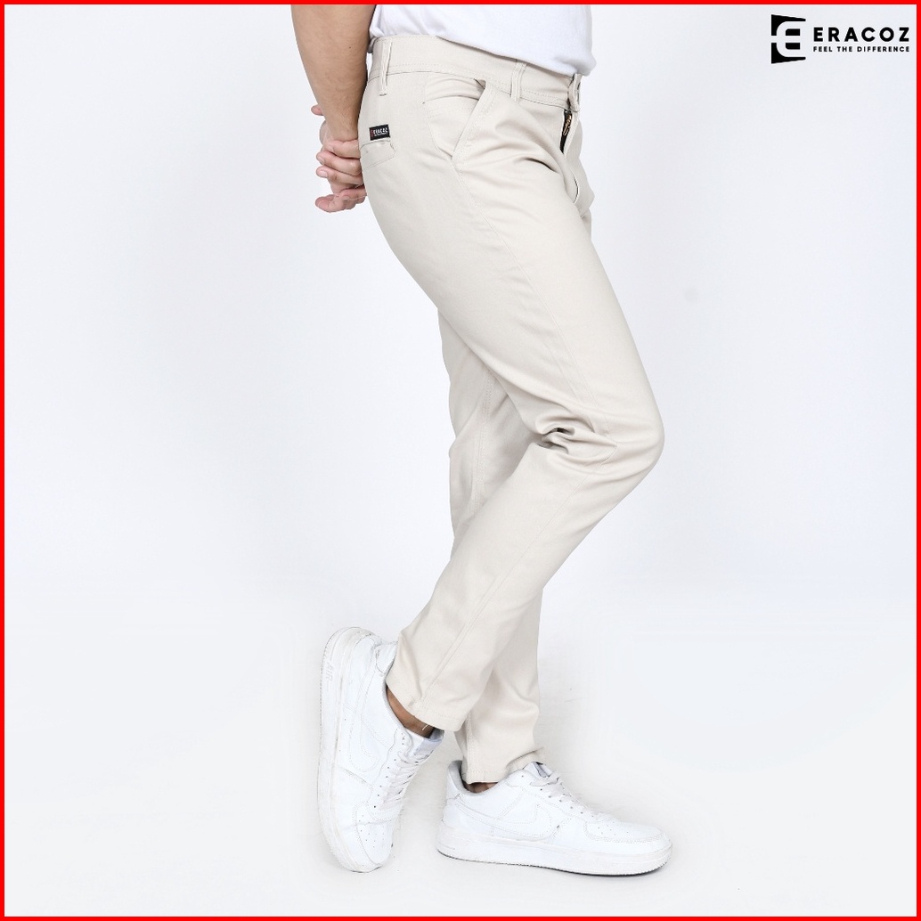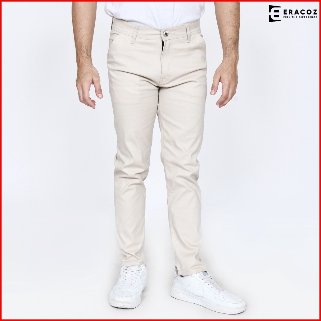Eracoz Celana Chino Panjang Pria Skinny Fit Big Size Jumbo Cream