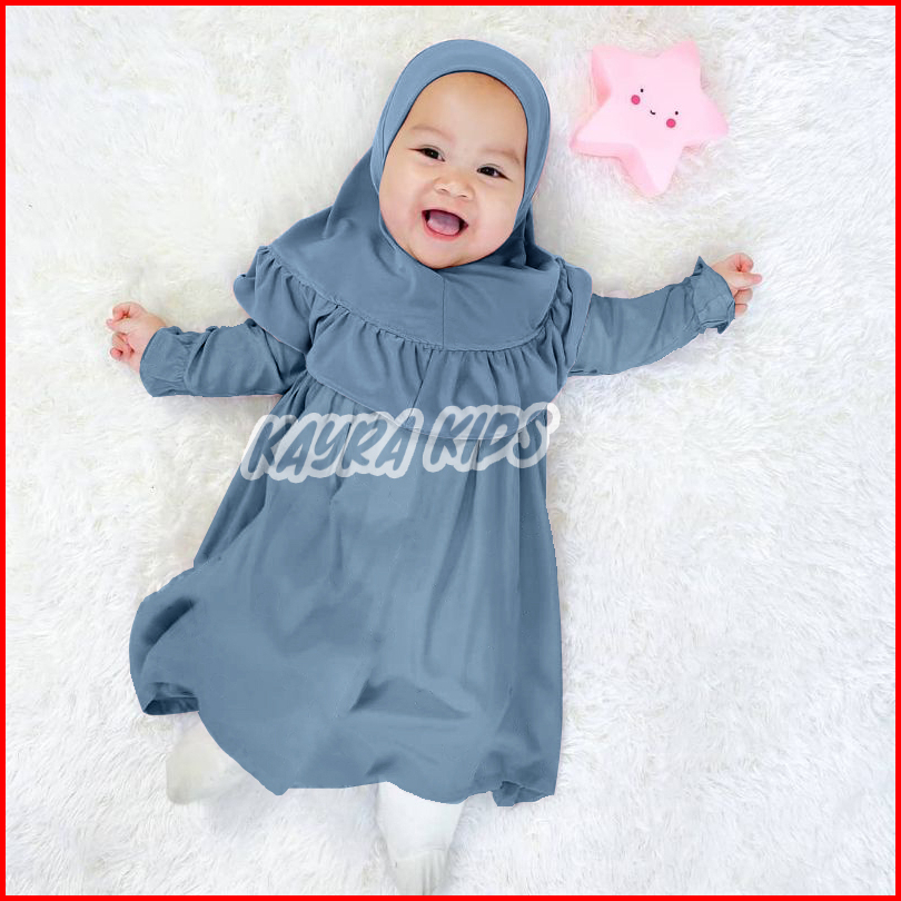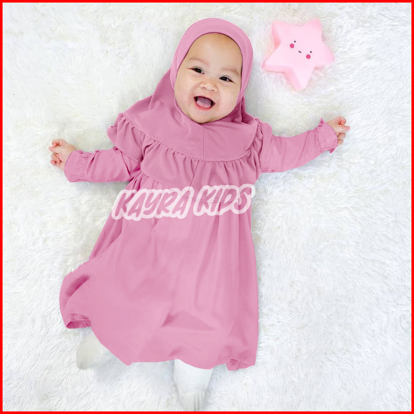 Baju Gamis Bayi Perempuan 0-3 Tahun Pakaian Muslim Anak Free Jilbab Dress Lebaran