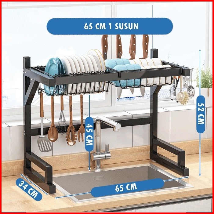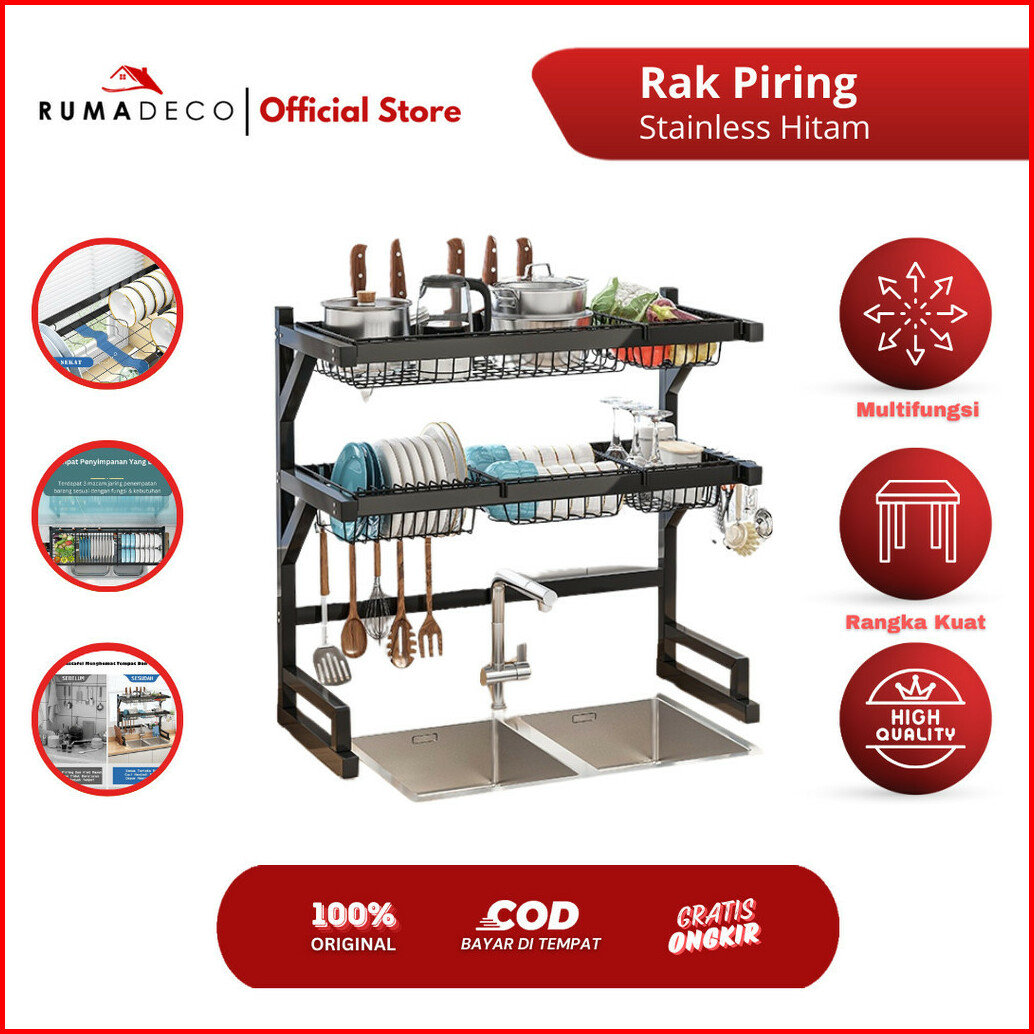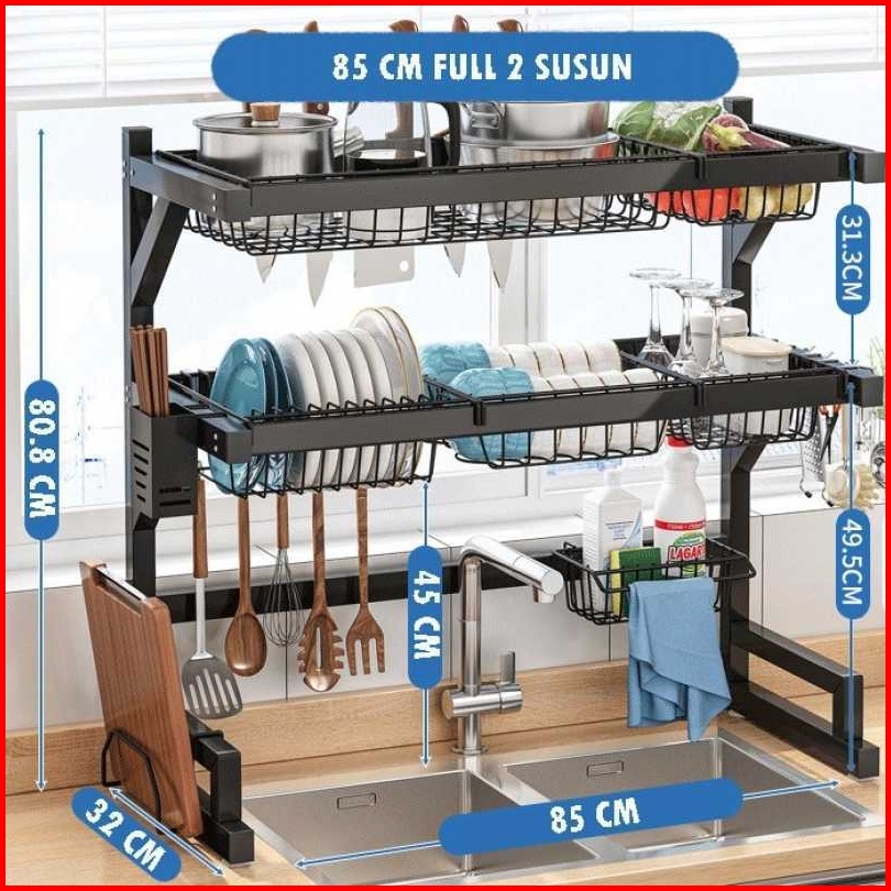 Rumadeco Rak Dapur Wastafel Stainless Hitam 2 Susun