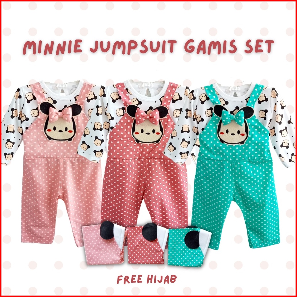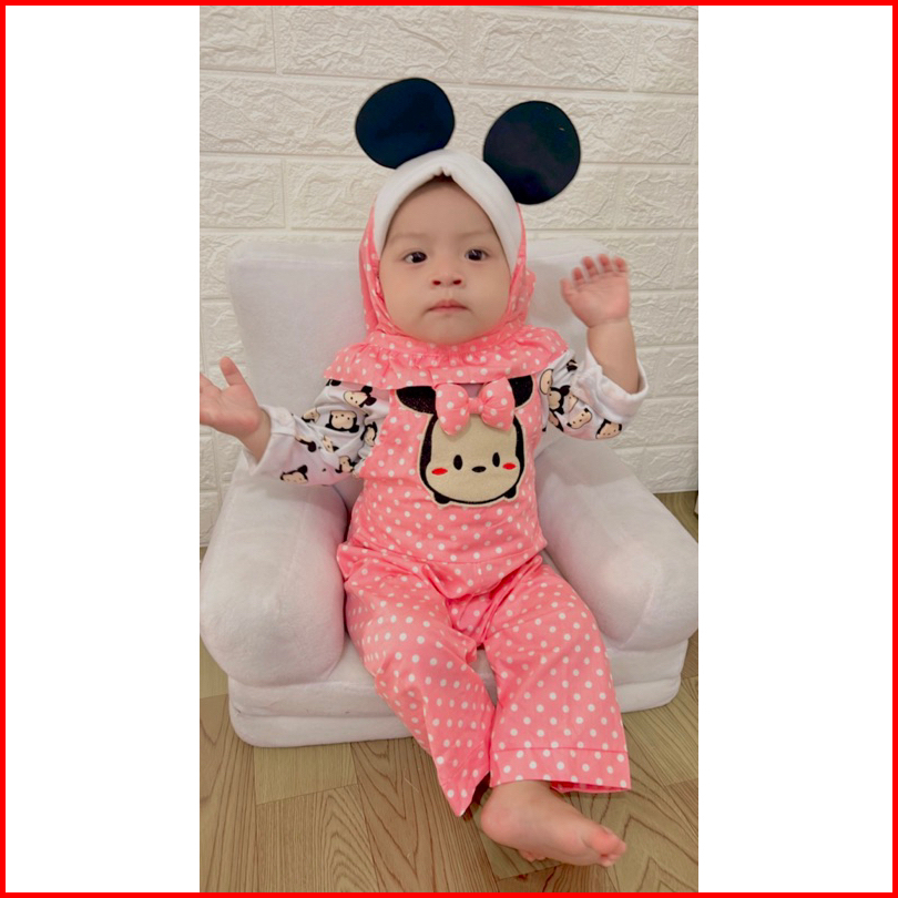 Miiiniie Polkadot Jumpsuit Gamis Set Gamis Anak Perempuan Baju Muslim Balita Baby 6 12 18 Bulan