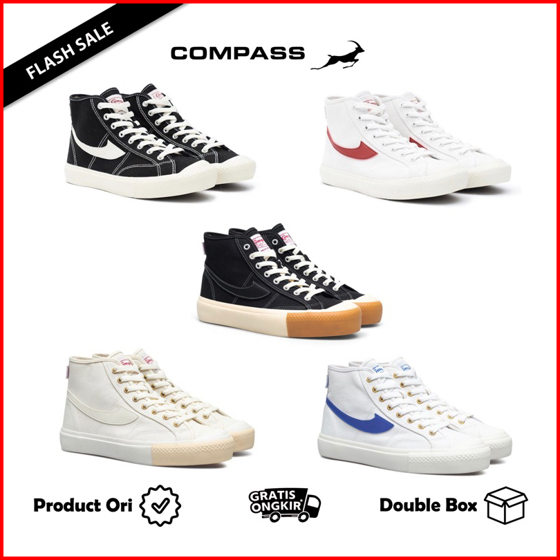 Original Compass Gazelle Hi Black White Blue Sky Cappucino Cream White Blue White Red