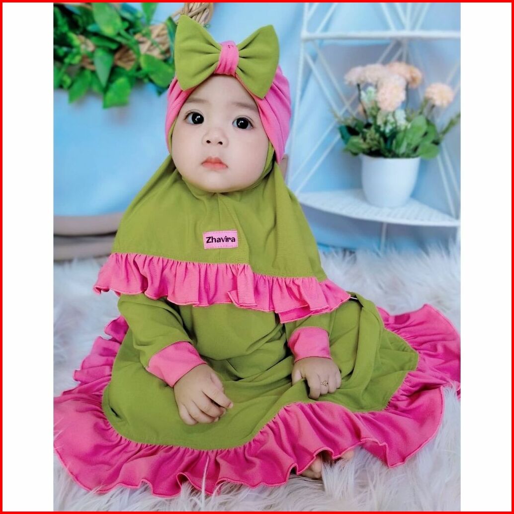 Gamis Bayi Anak Perempuan 0 - 3 Tahun Zhavira Set Hijab Bahan Jersey Newborn 1 2 Tahun