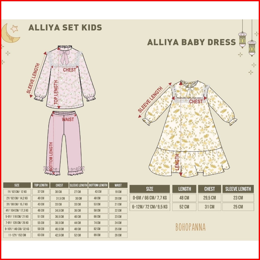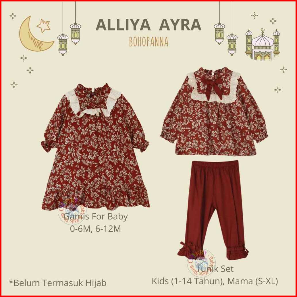 Bohopanna Alliya Tunik Set 0m - 12y Malika Mama Pola Baby Gamis Turban Setelan Tunik Hijab Lebaran Anak Mama Malika Set