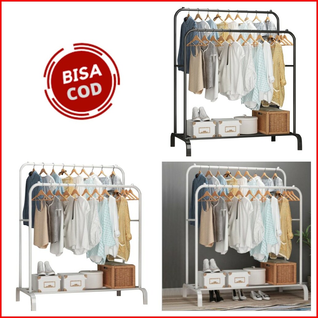 Gantungan Baju Rak Lemari Jemuran Stand Hanger Tempat Pakaian Sepatu Double Home Wallpaper Shop