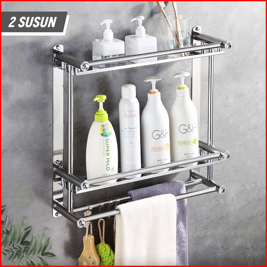 Rak Kamar Mandi Dinding Stainless Steel Rak Sabun Kamar Mandi 1-3susun 40-60cm