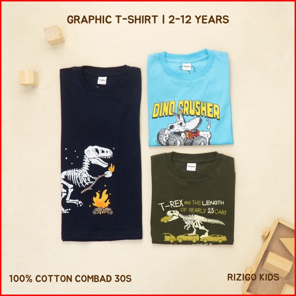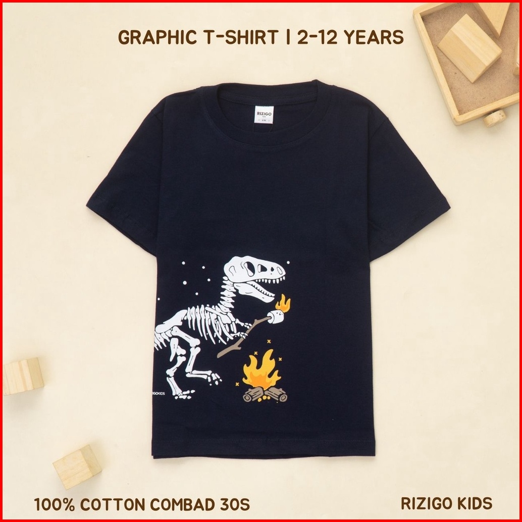 Rizigo Kids Baju Distro Anak Series Dinosaurus Fire 2-12 Tahun - Kaos Anak Laki Laki Perempuan