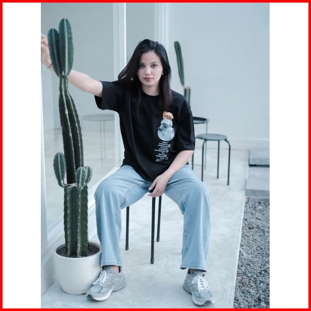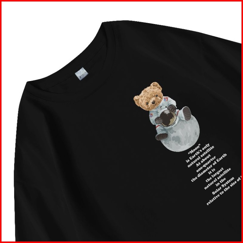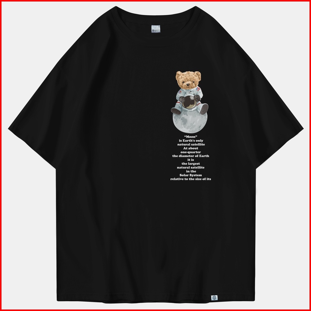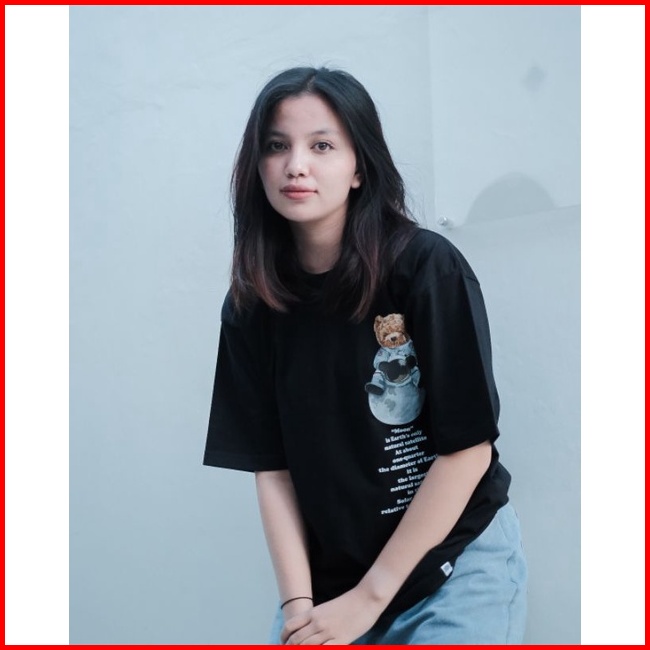 Ootdsupply Oversized Tshirt Moonbear Black T-shirt Oversize Pria Wanita Ovz004