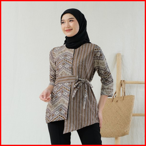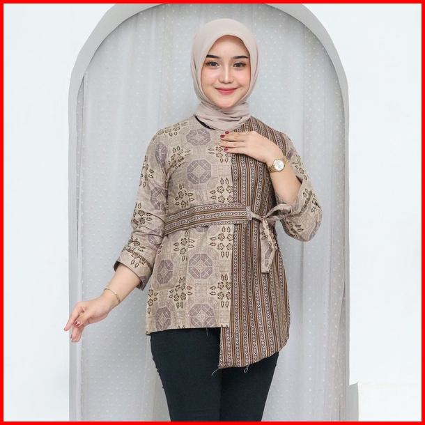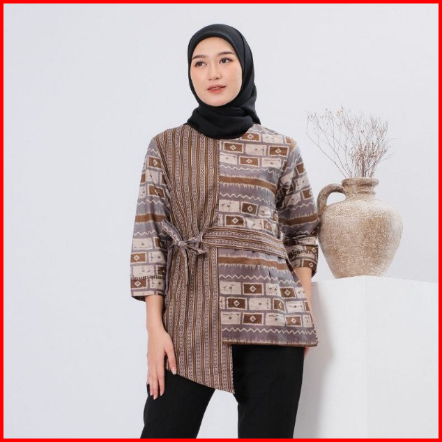 Tey-17 Batik Wanita Asj Sa Hrb026 Kenongo Kemeja Tosca Pendek