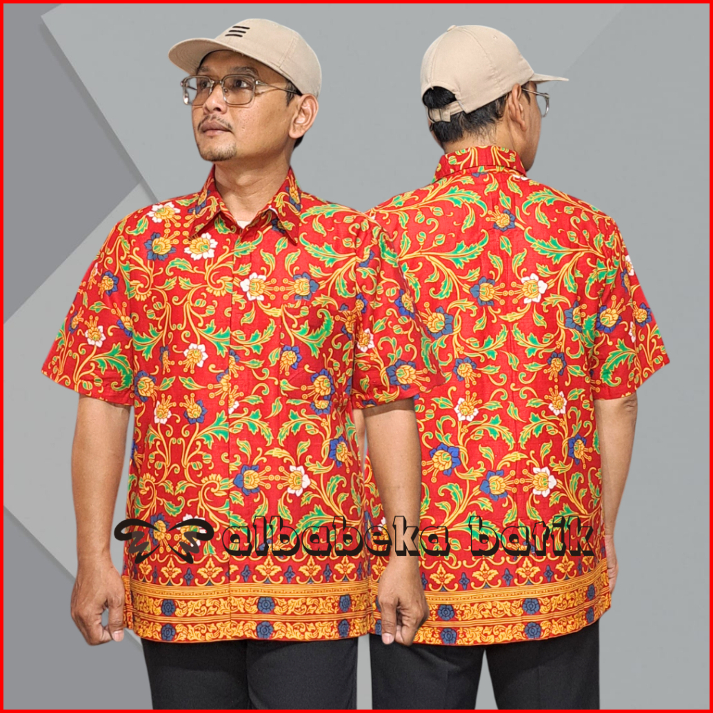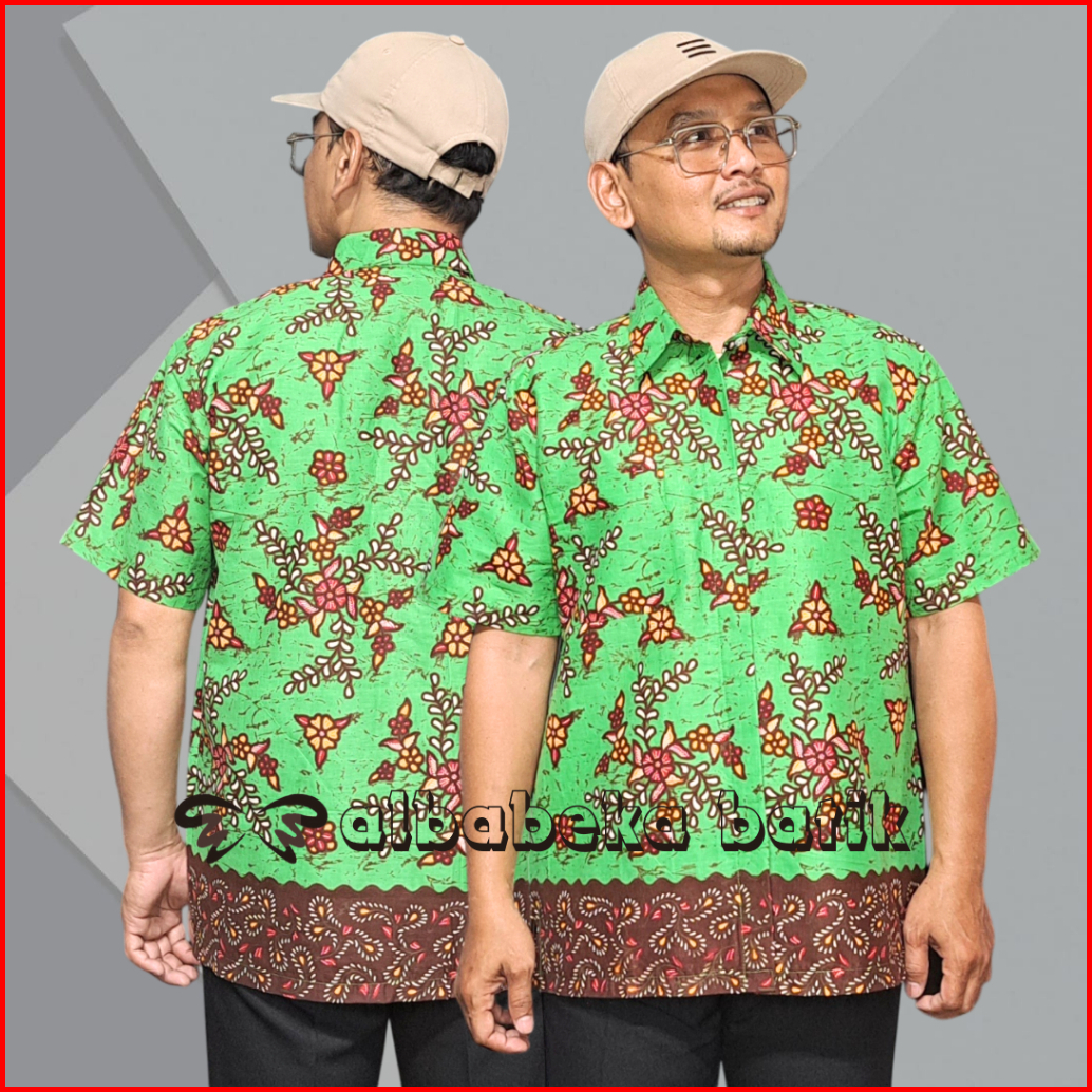 Kemeja Batik Pria Lengan Pendek M L Xl Hijau Terbaru Hem Batik Pria Kerja Seragam Kantor