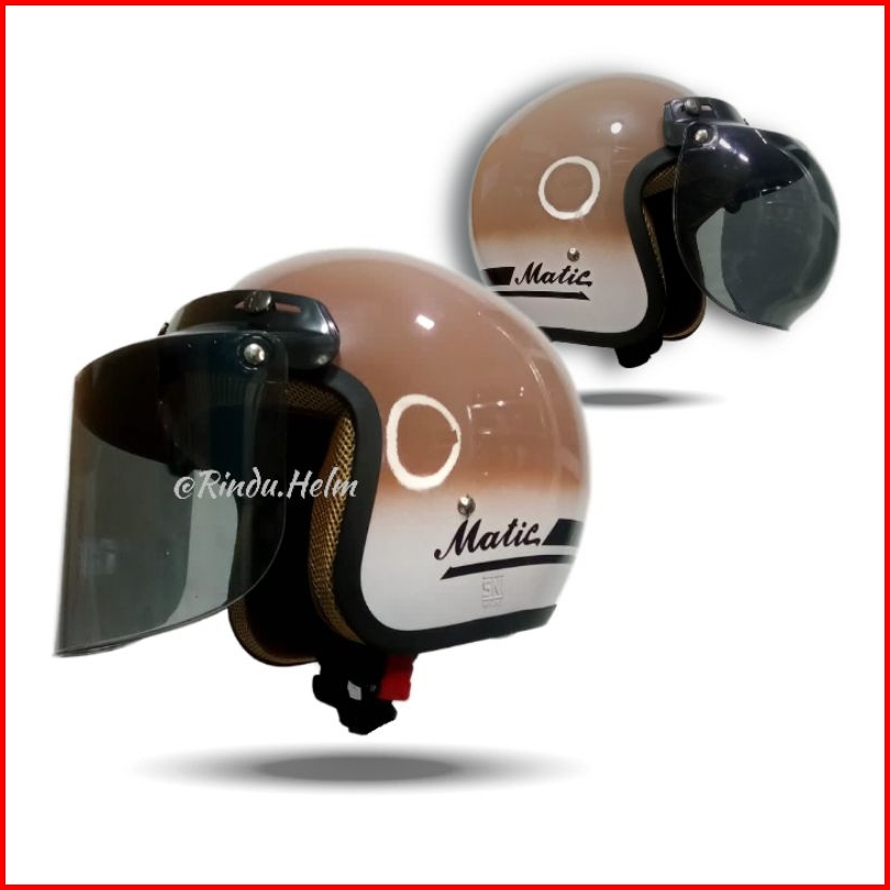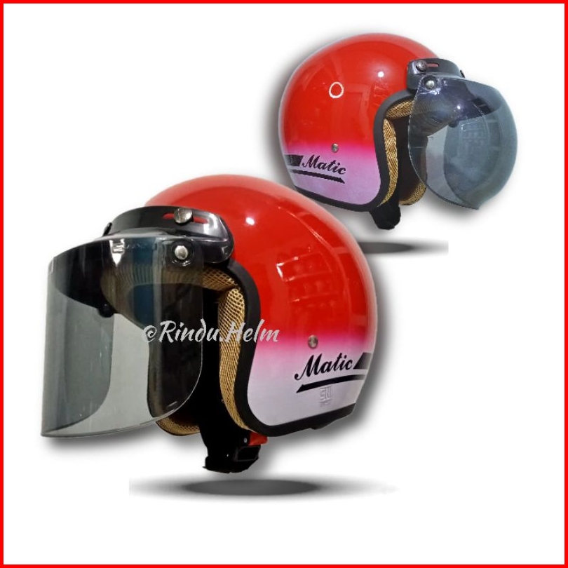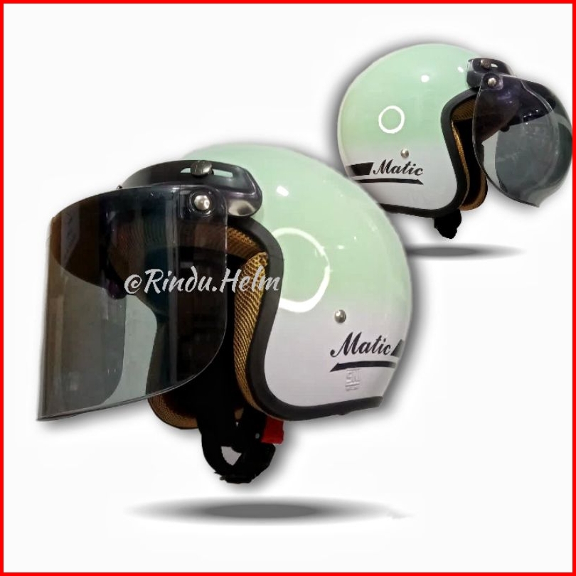 Kaca datar hitam, Kaca cembung hitam, Kaca datar putih, Helm saja tanpa kaca, Helm + PEt pendek