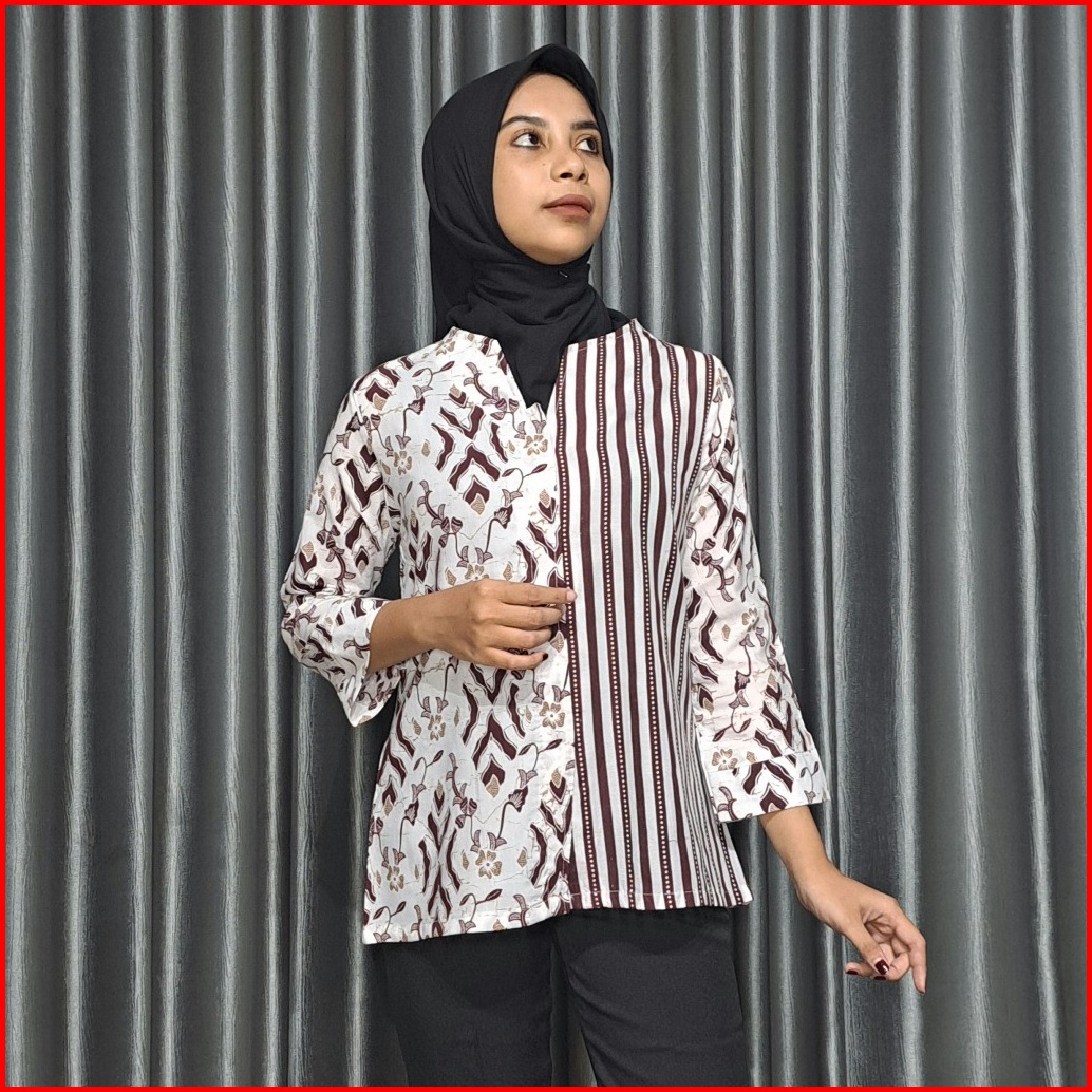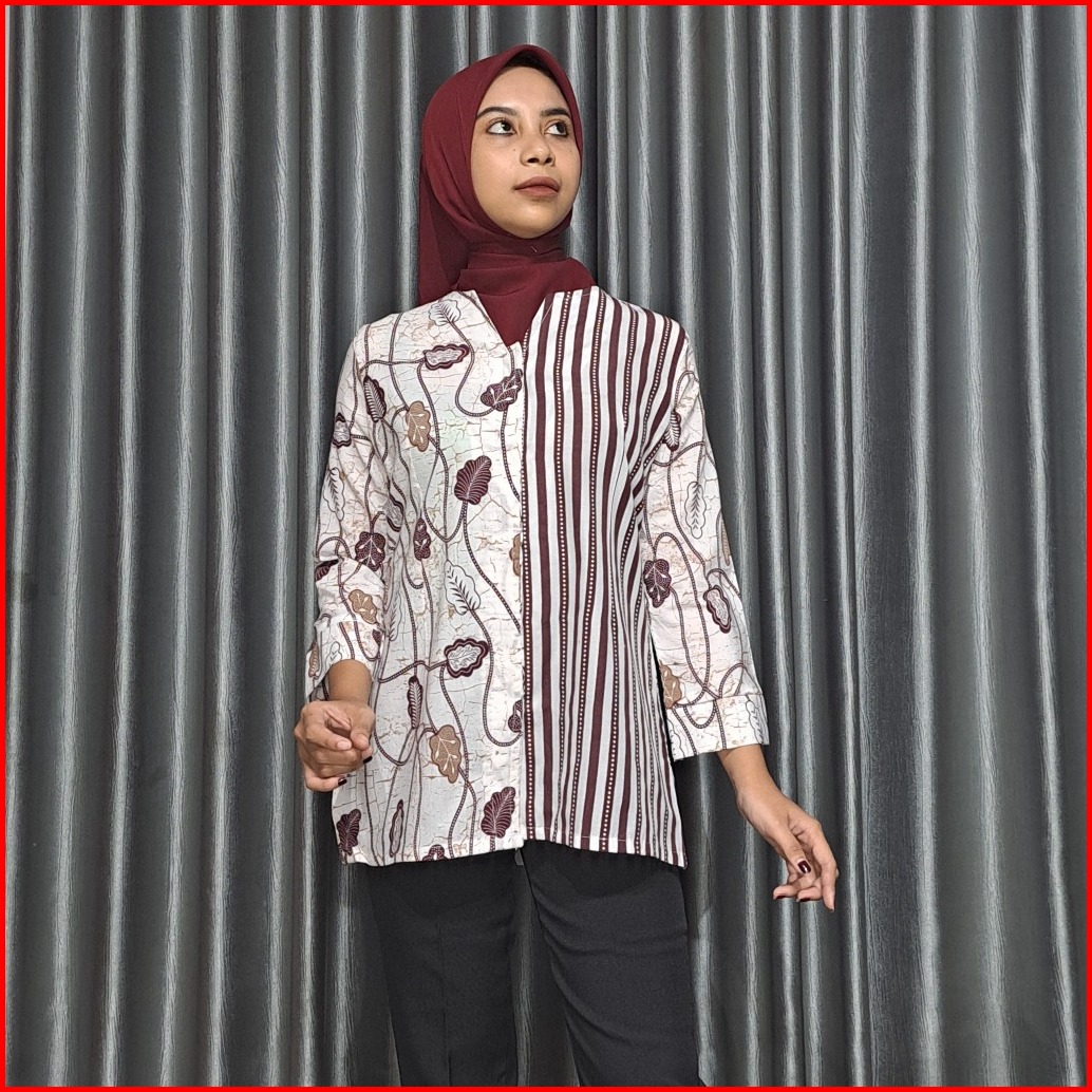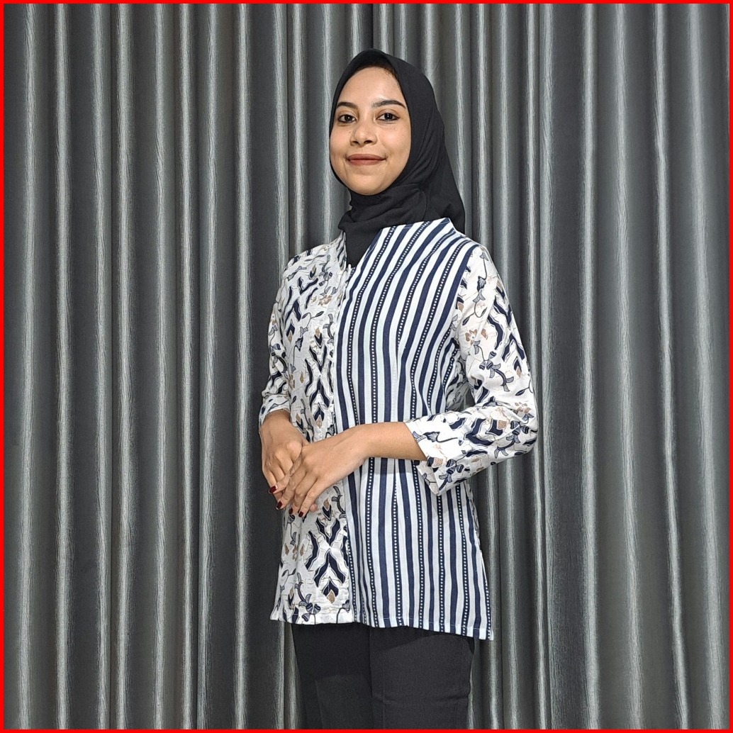 Batik Wanita Kerja Seragam Kantor Modern Motif Bunga Terbaru Atasan Batik Blouse Terbaru