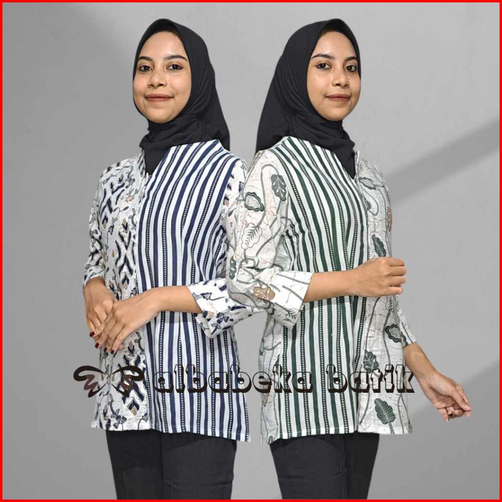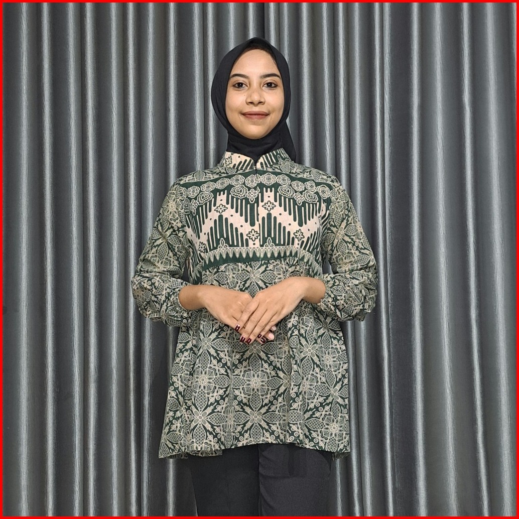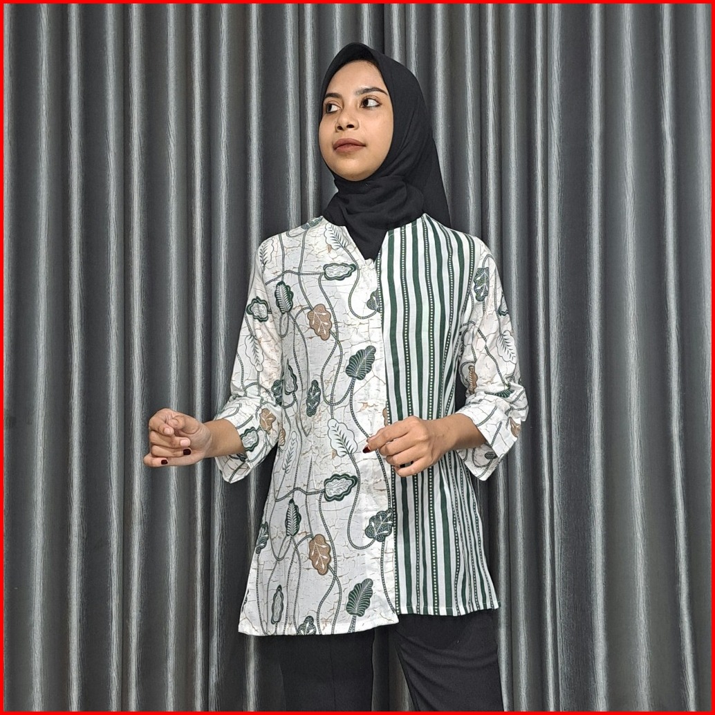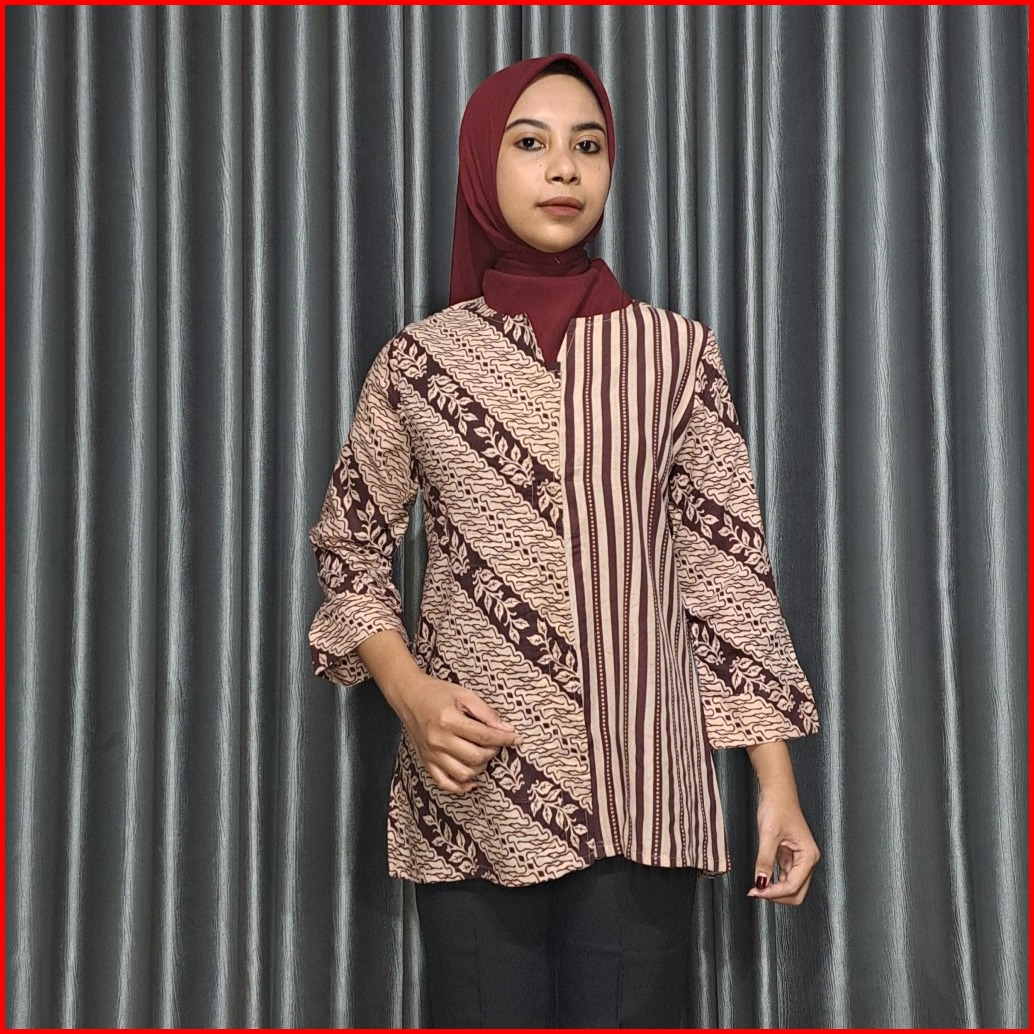 Batik Wanita Kerja Seragam Kantor Modern Motif Bunga Terbaru Atasan Batik Blouse Terbaru