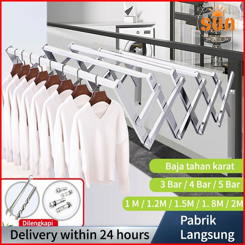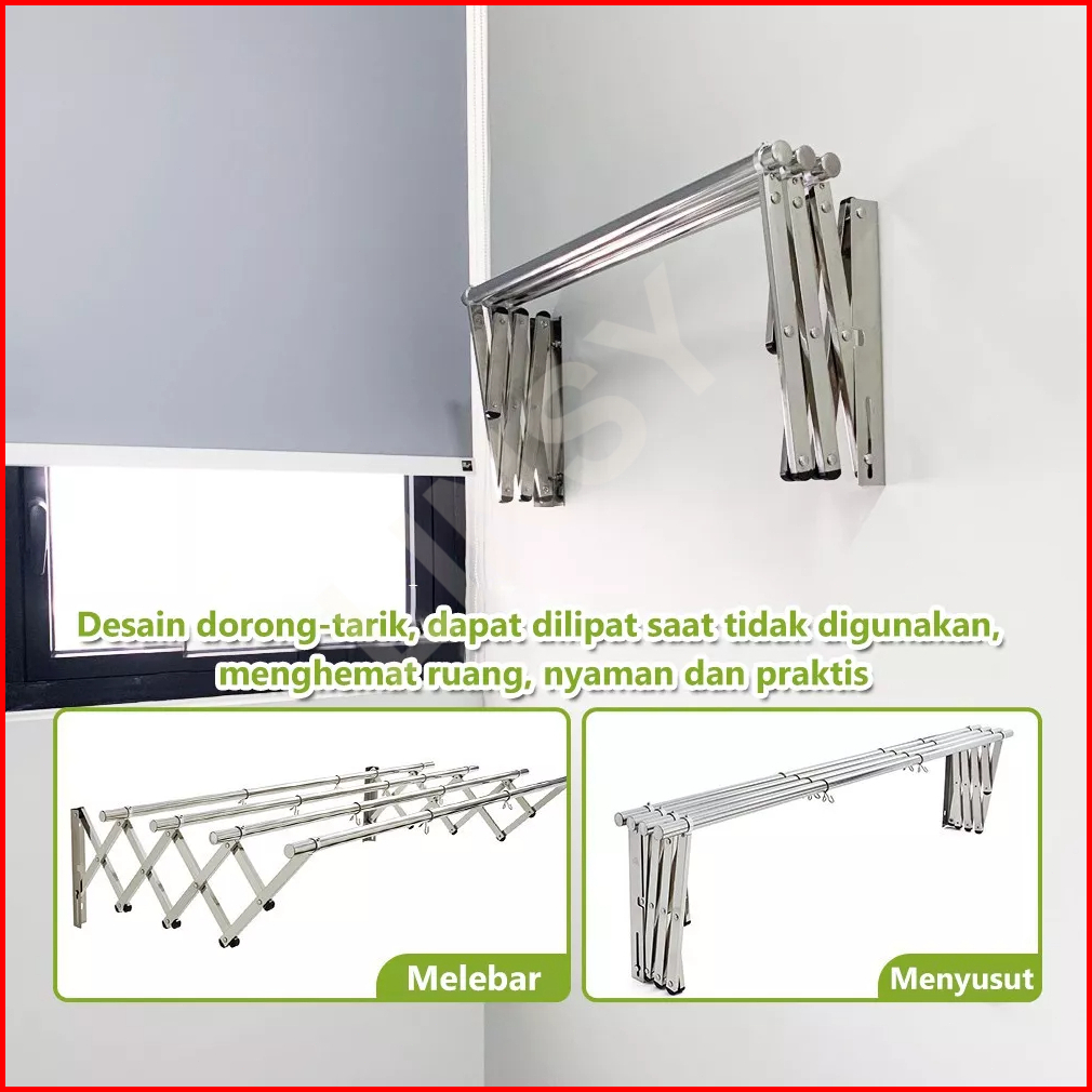 Jemuran Baju Tempel Dinding - Rak Jemuran Pakaian Basah Lipat Rak Jemuran Jemuran Lipat Dinding Stainless Steel