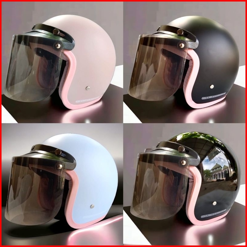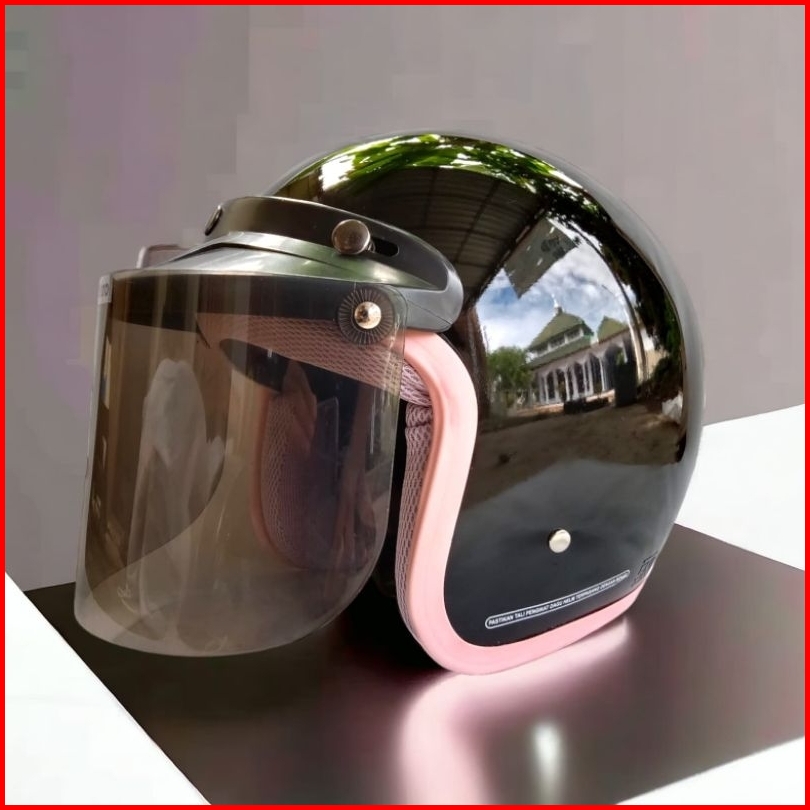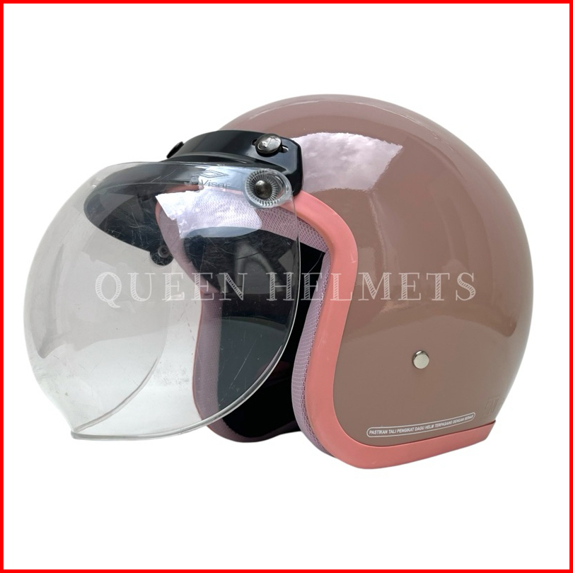 Helm Wanita Hijab Polos Lis Pink Helm Bogo Dewasa Full Leher Sni
