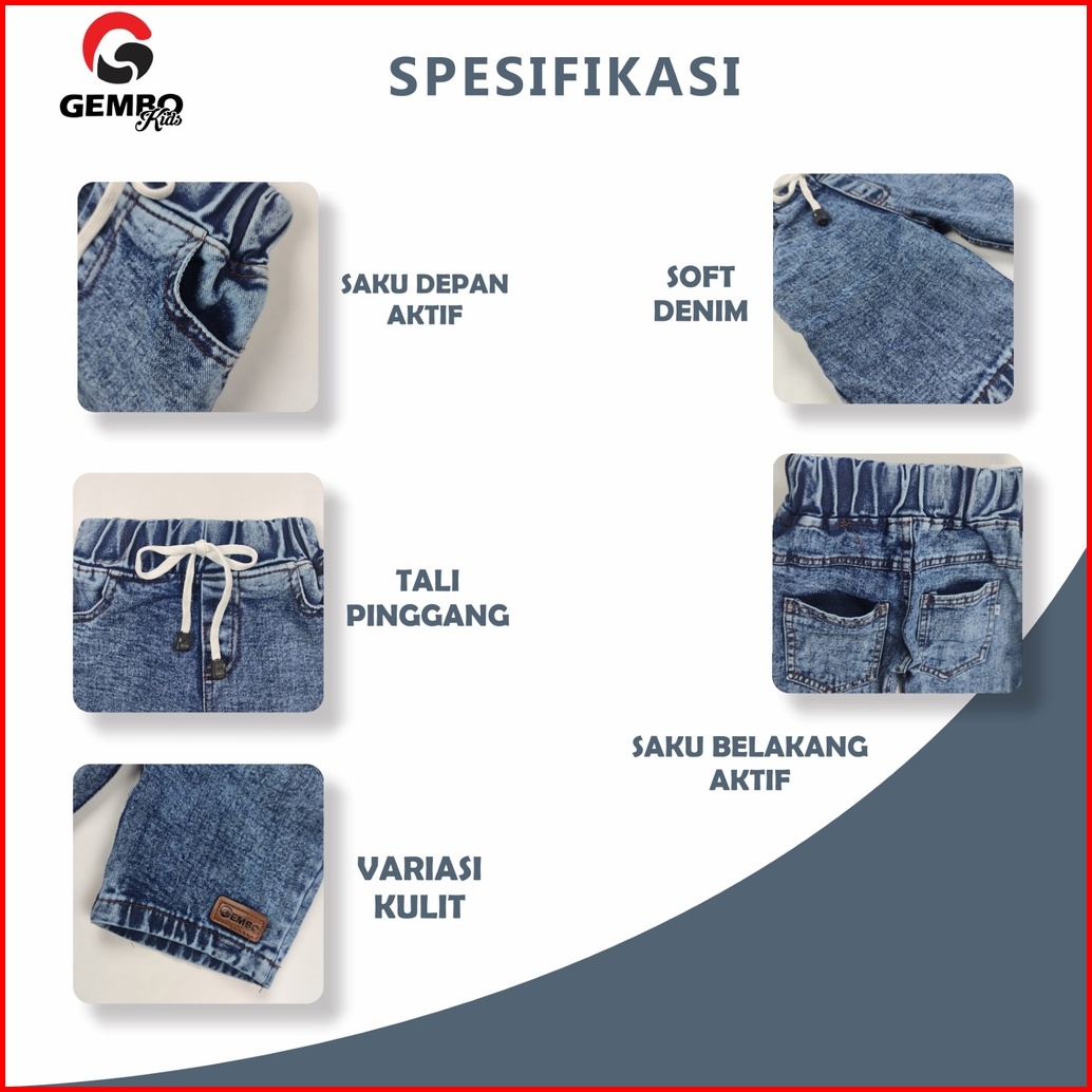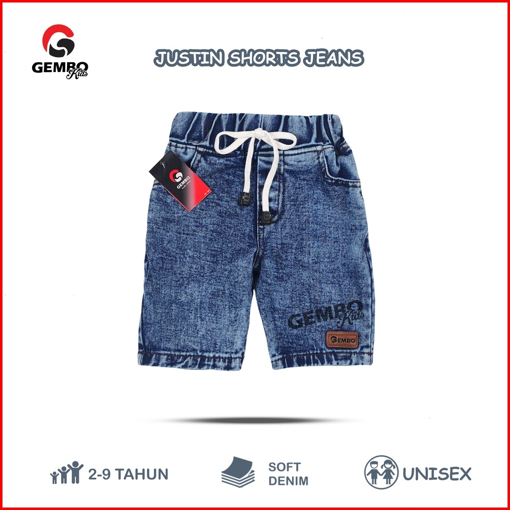 Celana Jeans Anak 2-10 Tahun - Celana Anak Unisex Jeans Pendek Snow Wash Justin - Gembo Kids