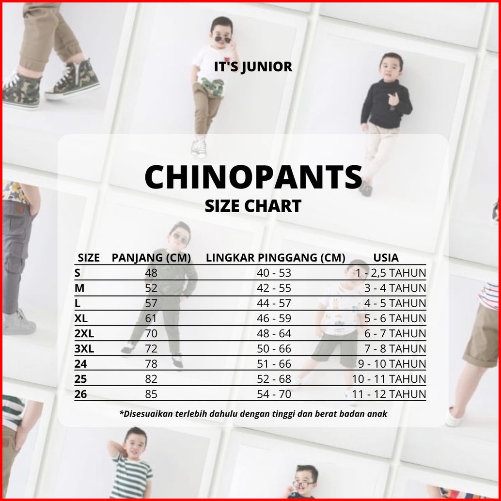 S (1 - 2,5 Tahun), M (3 - 4 Tahun), L (4 - 5 Tahun), XL (5 - 6 Tahun), 2XL (6 - 7 Tahun), 3XL (7 - 8 Tahun)