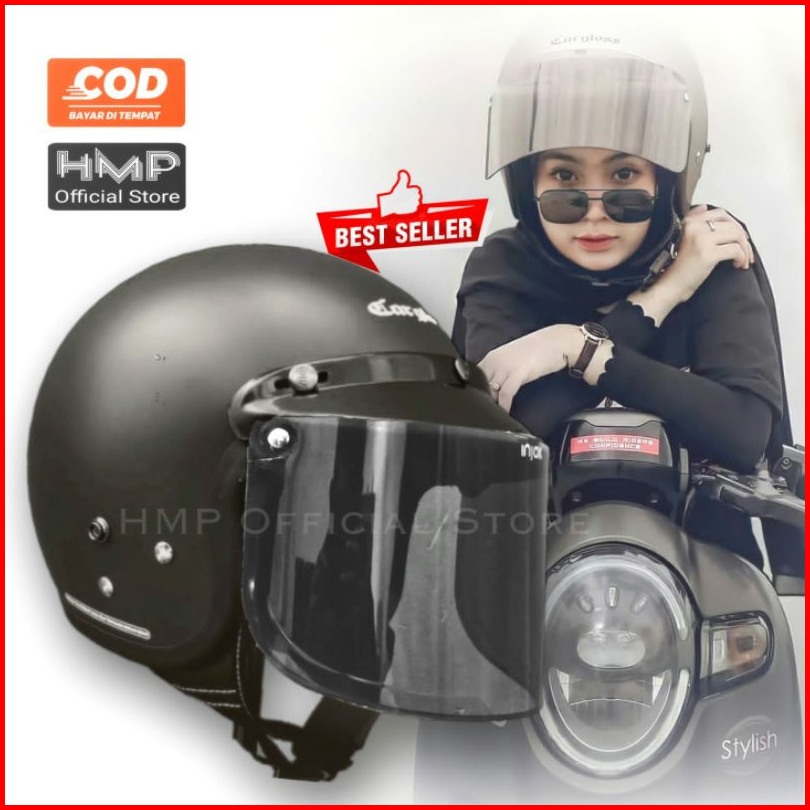 Helm Bogo Sni Dewasa Remaja Original Dengan Pet Kaca Datar Injak Dan Cembung Eh