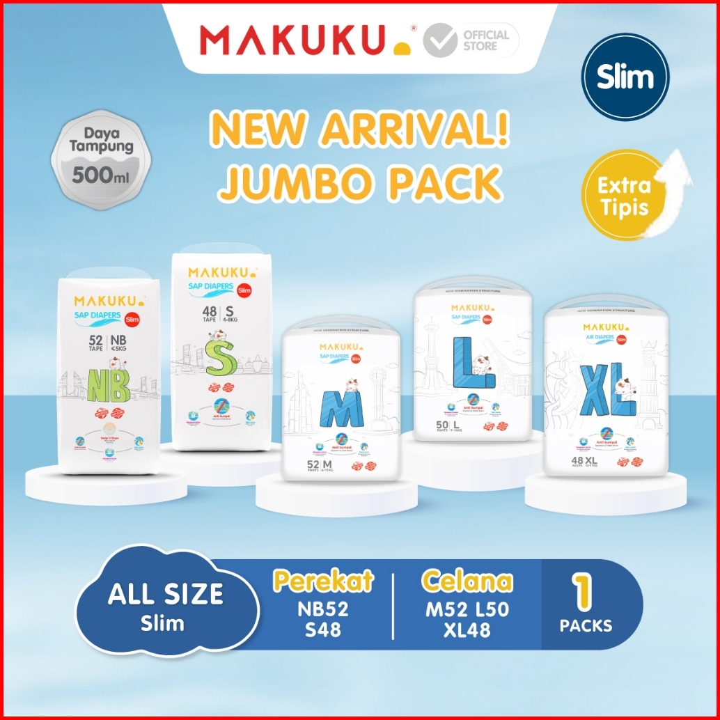 1 Pack Makuku Sap Diapers Slim Jumbo Popok Bayi Tipis Sap Anti Gumpal Cepat Kering Sekali Pakai Tipe Nb52 S48 M52 L50 Xl