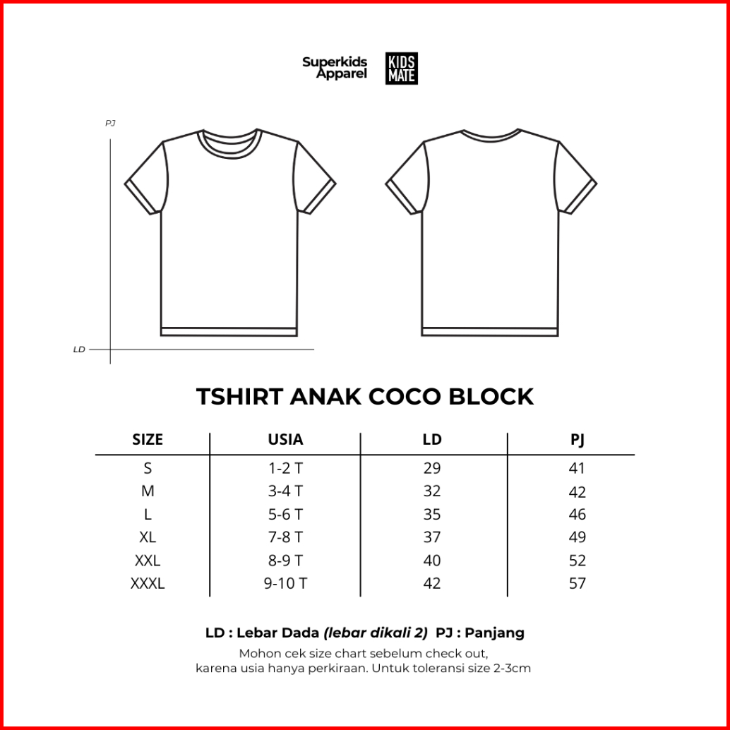 S (1-2T), M (3-4T), L (5-6T), XL (7-8T), XXL (8-9T), XXXL (9-10T)