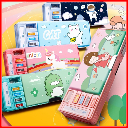 Aimilo Tempat Pensil Multifungsi Kotak Pensil Anak Lengkap Peruncing Gunting Isolasi Penghapus Penggaris Alat Tulis Seko