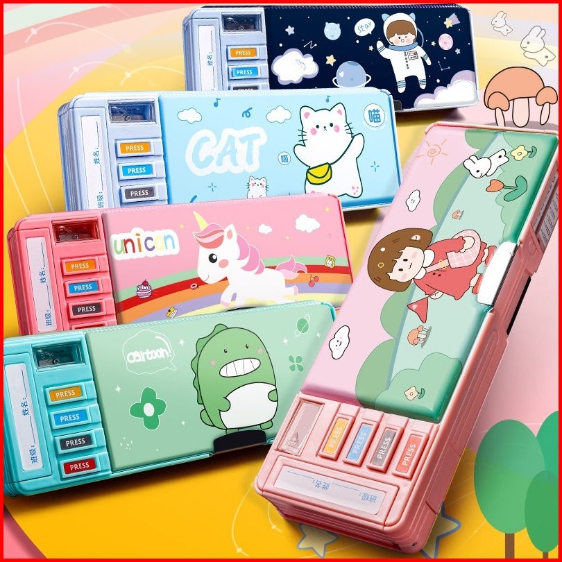 Estation - Tempat Pensil Multifungsi Motif Unicorn Dinosaurus Astronot Untuk Anak Kartun Lapisan