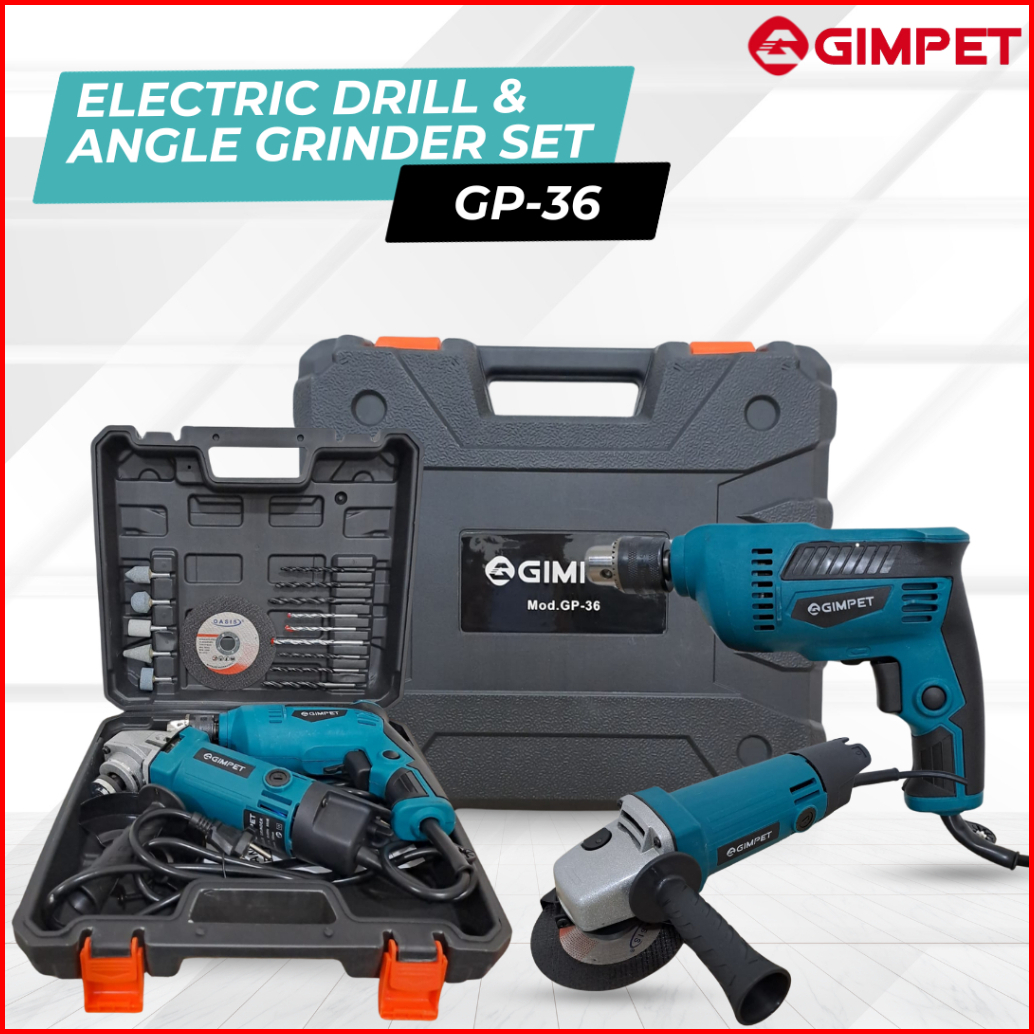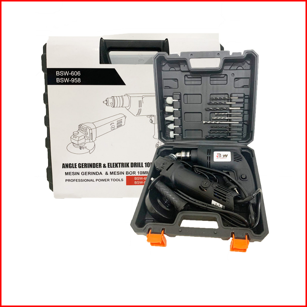 Gimpet Set Bor Dan Gerinda Lengkap Mesin Bor Listrik 10mm Bolak Balik - Mesin Bor Listrik 10mm Koper Full Tembaga Model