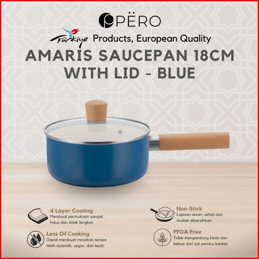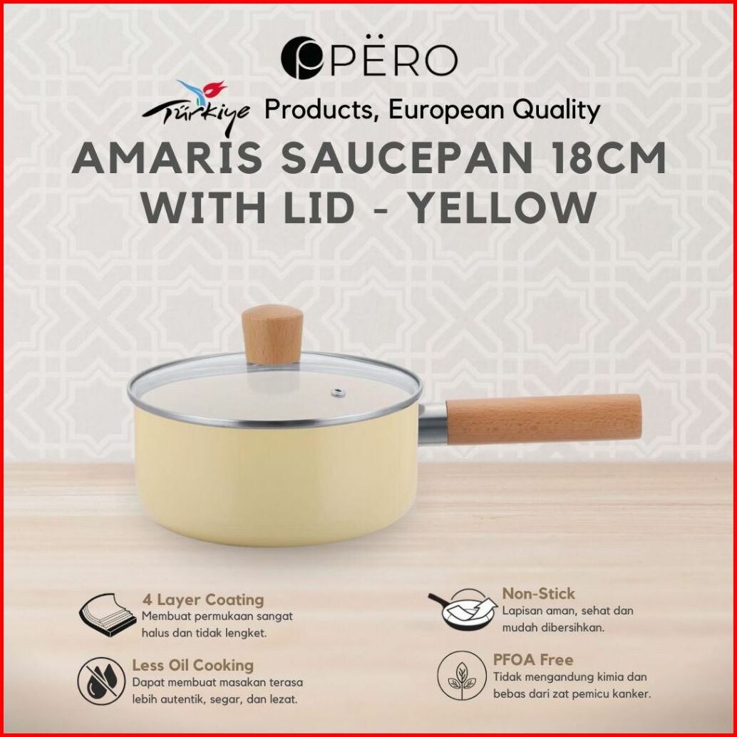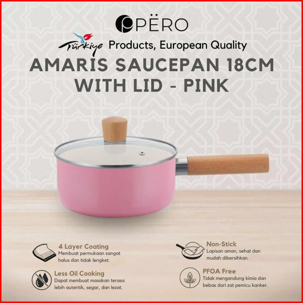New Product Pero Amaris Saucepan 18cm Lid Wooden Handle Biogranite Saucepan Milkpan 18cm Dengan Tutup Anti Lengket Panci