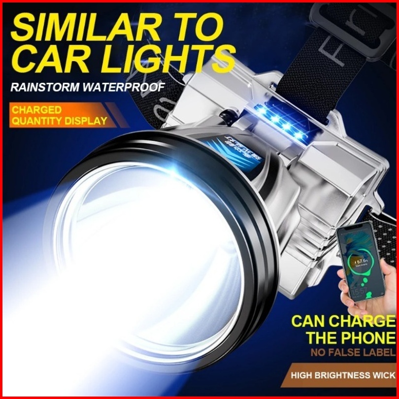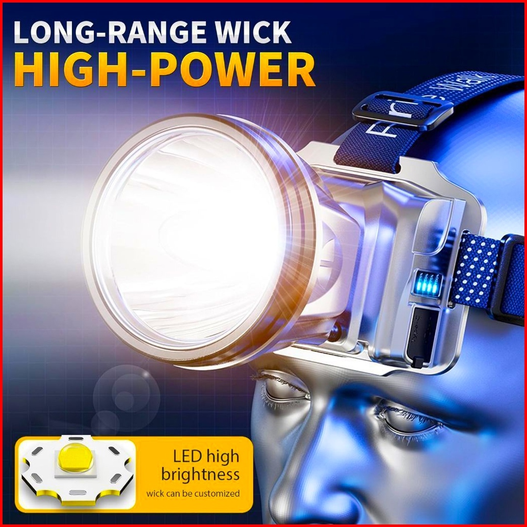Garansi 30 Tahun Headlamp Led Outdoor Senter Kepala 500 Watt Super Terang Cas Listrik 2165000mah Jarak Jauh 915000m 950j
