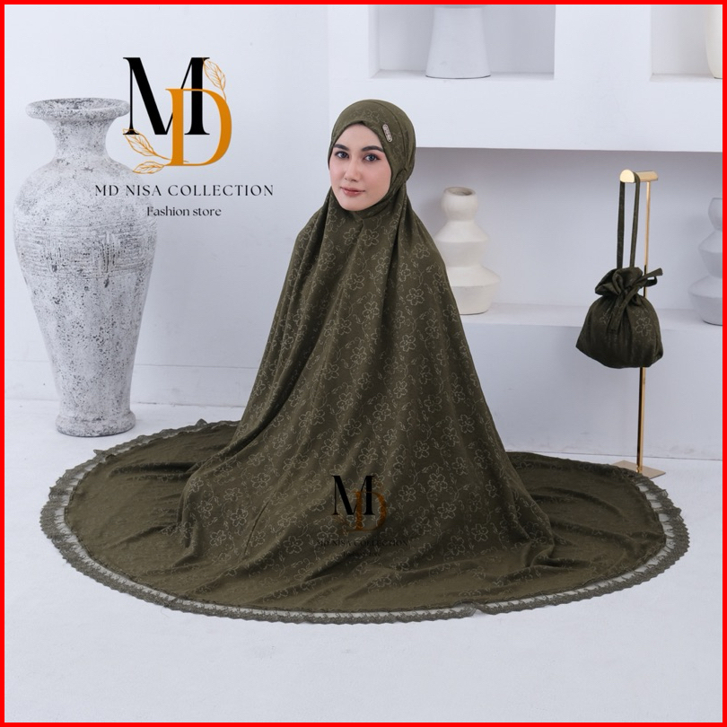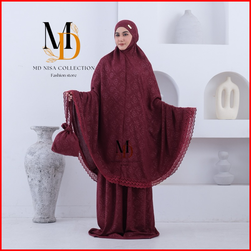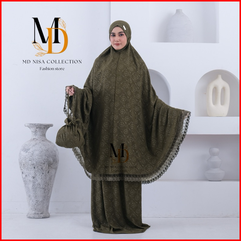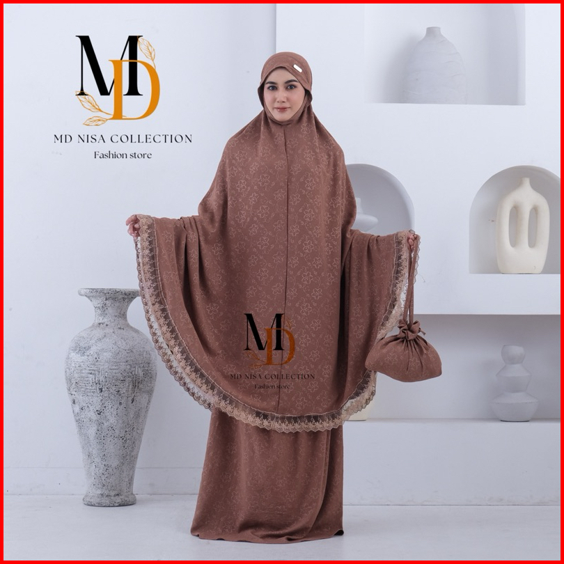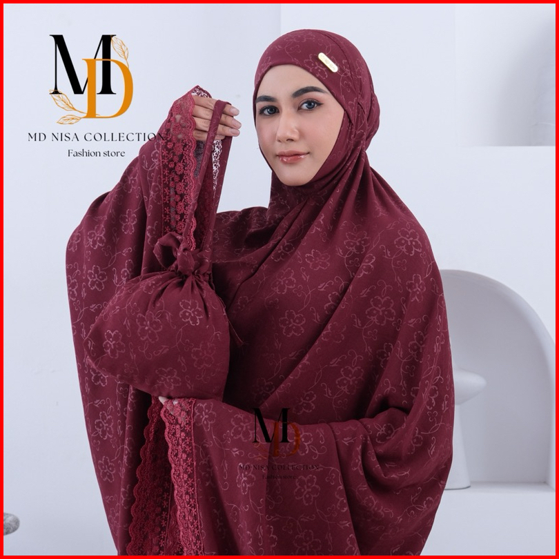 Md Nisa - Mukena Shadira Dewasa Embos Cringkle Airflow Menutup Dagu Motif Bunga Mewah Renda Tille Daisy Atasan Bawahan