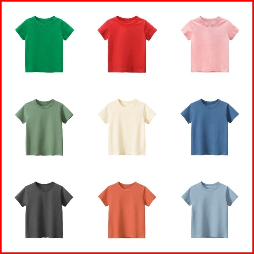 Kaos Lengan Pendek Anak Unisex Colorful Polos Kaos Oblong Anak Unisex