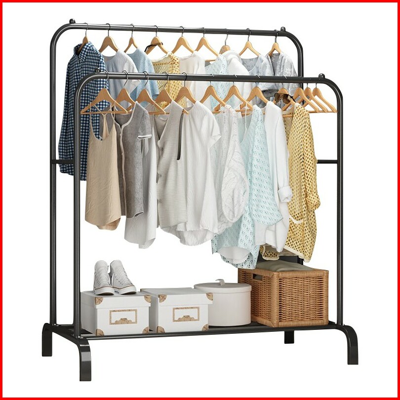 Gantungan Baju Rak Lemari Jemuran Stand Hanger Tempat Pakaian Sepatu Double Rak Home Wallpaper Shop