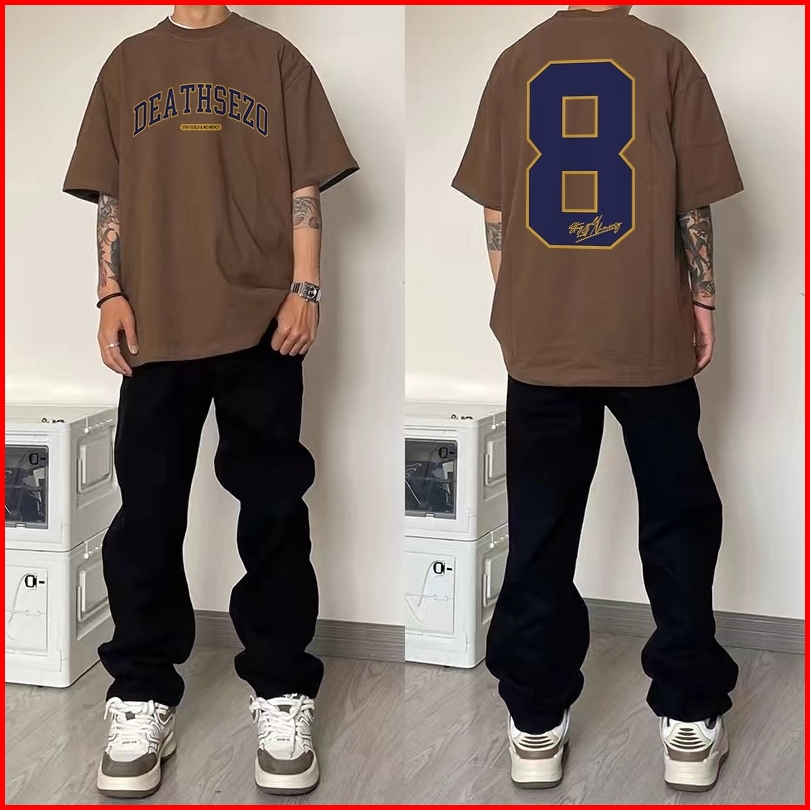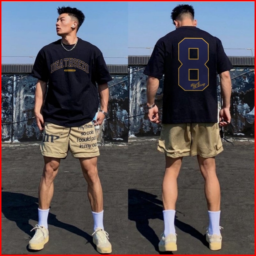 Renelle Atasan Kaos Oversized Tshirt Pria Hitam Lengan Pendek Baju Kaos Distro Pria Keren Kata Kata Sablon No.8 Kaos Obl